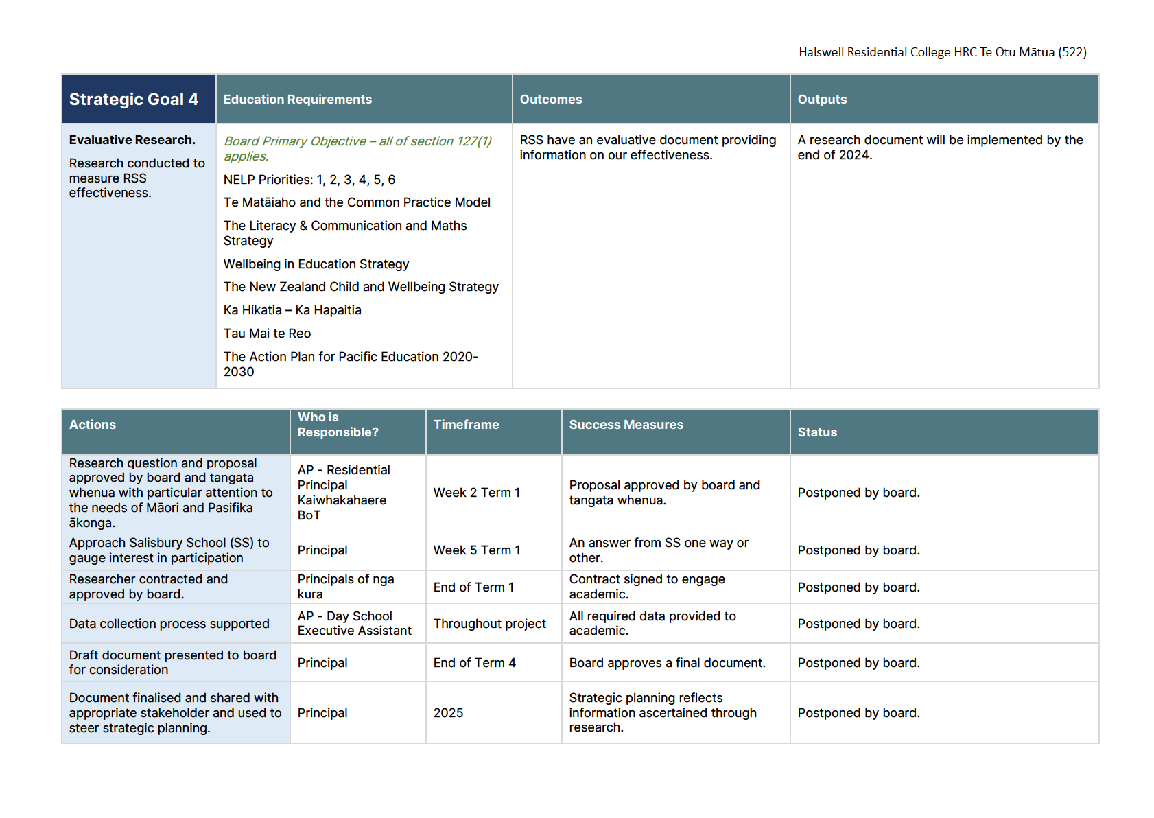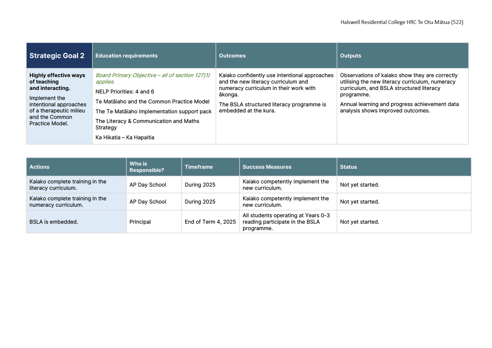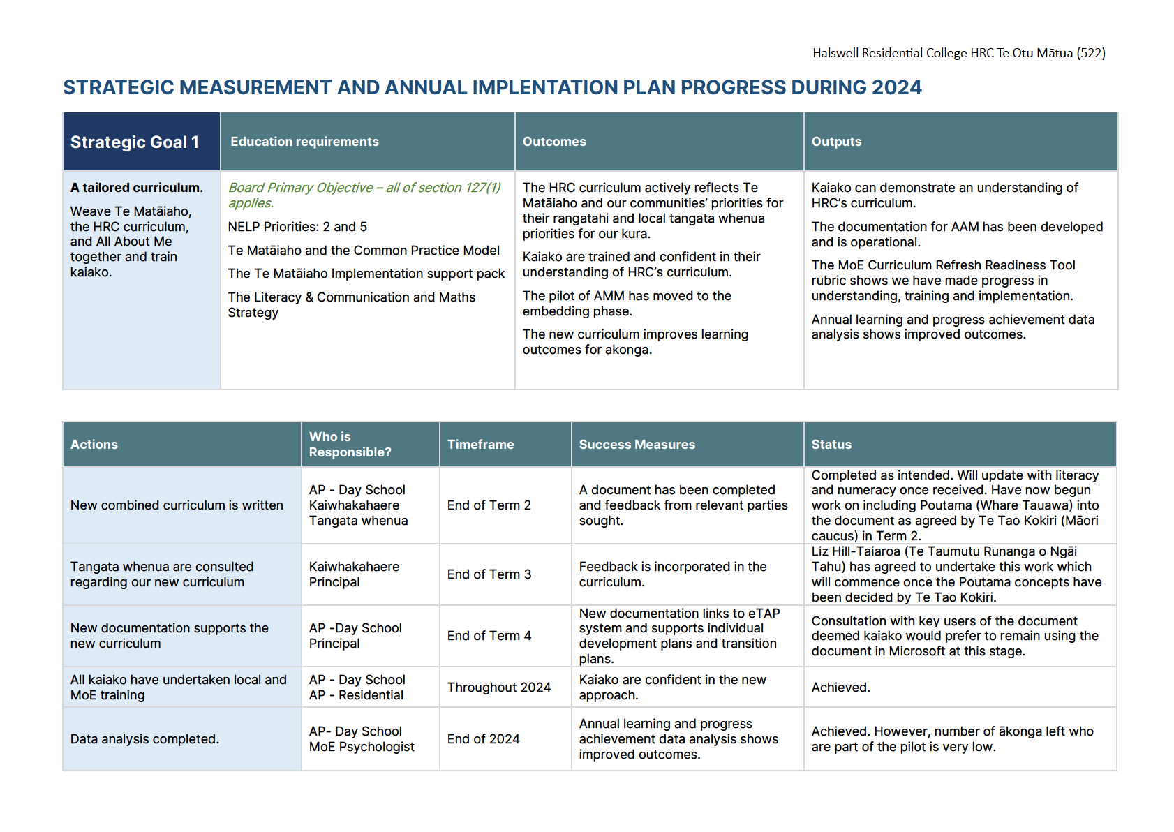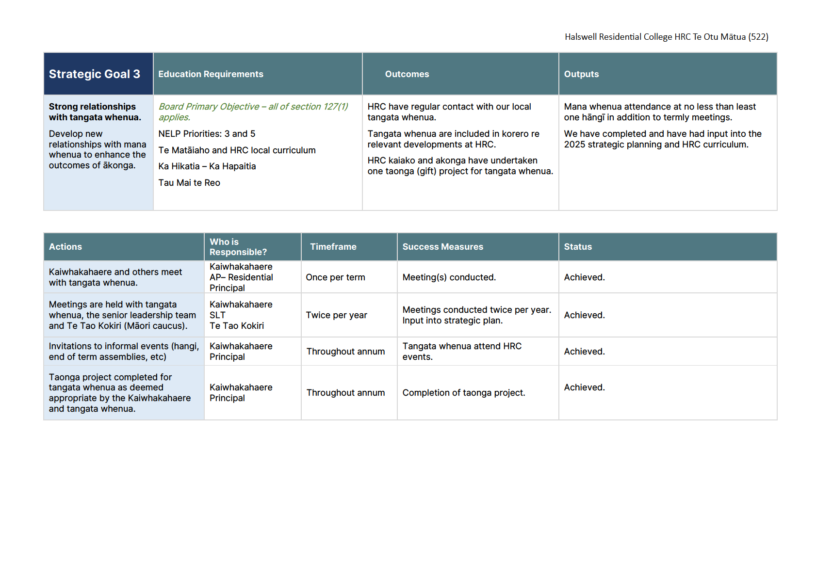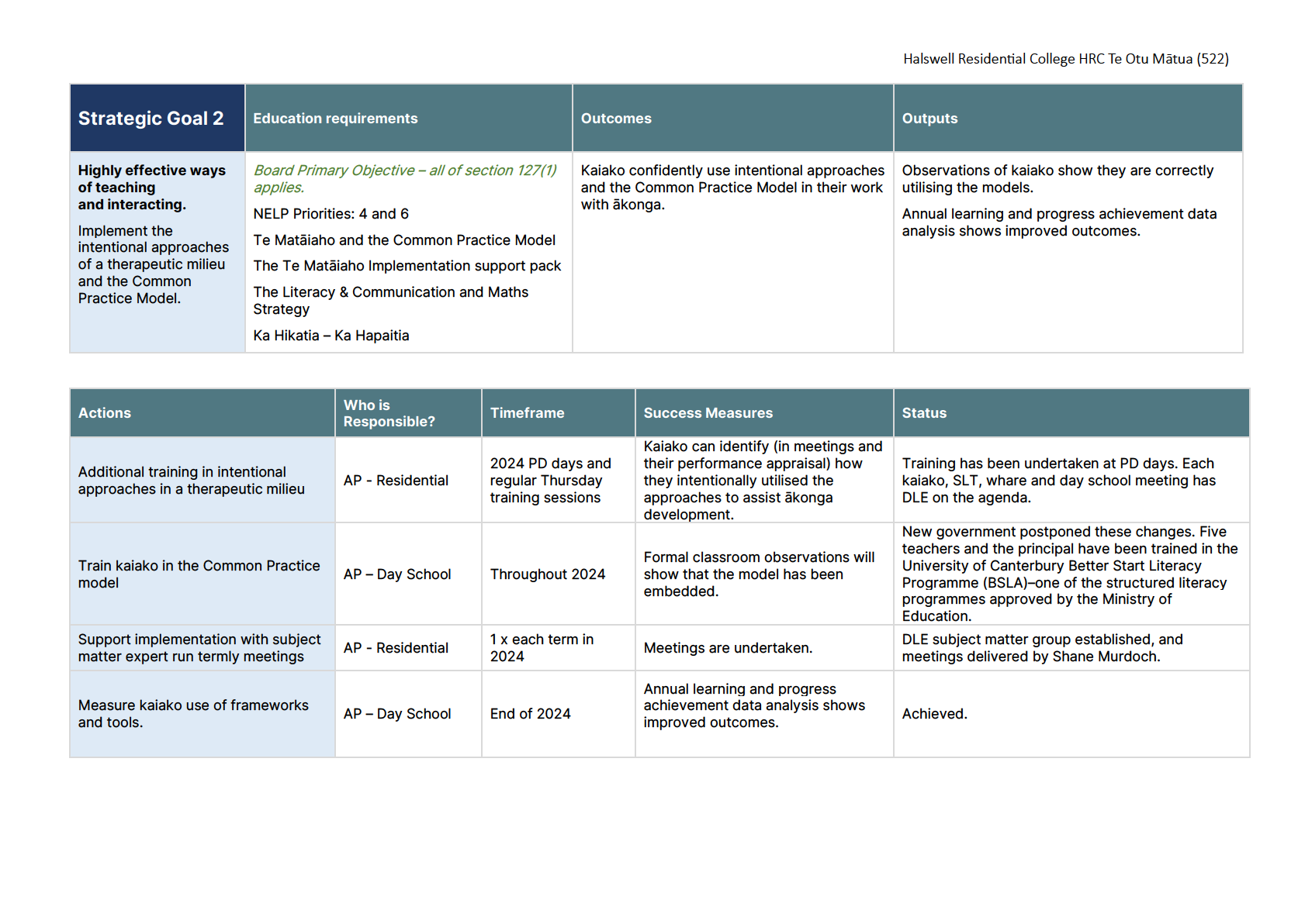 ERO noted that they were impressed with how the school had ticked off the goals in the 2024 strategic report and the goals