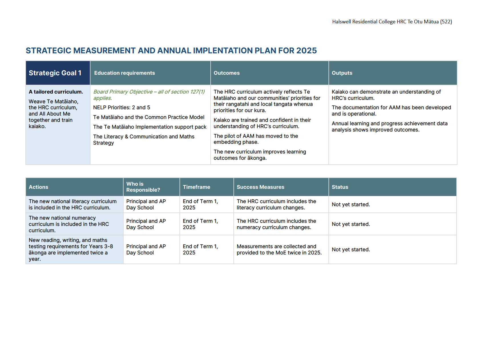 they set for us this year that aligned with the strategic report. They noted that this had required the kura to undertake