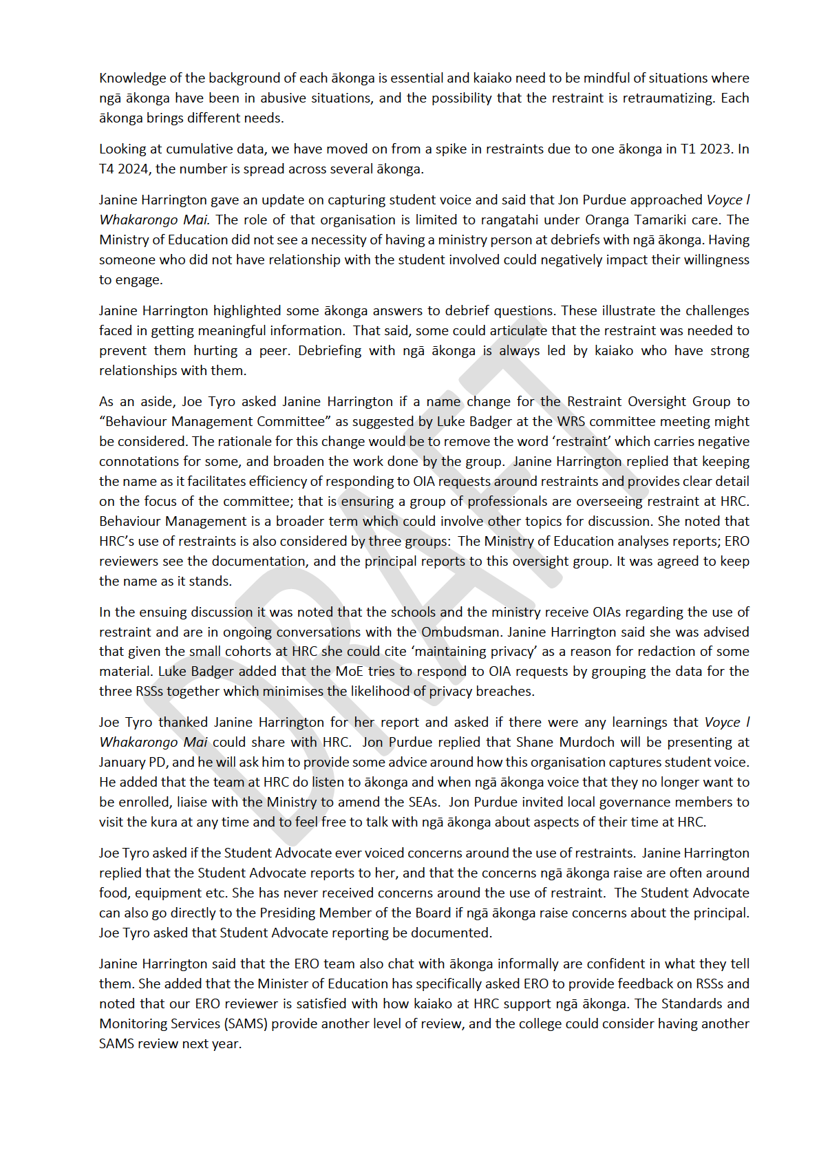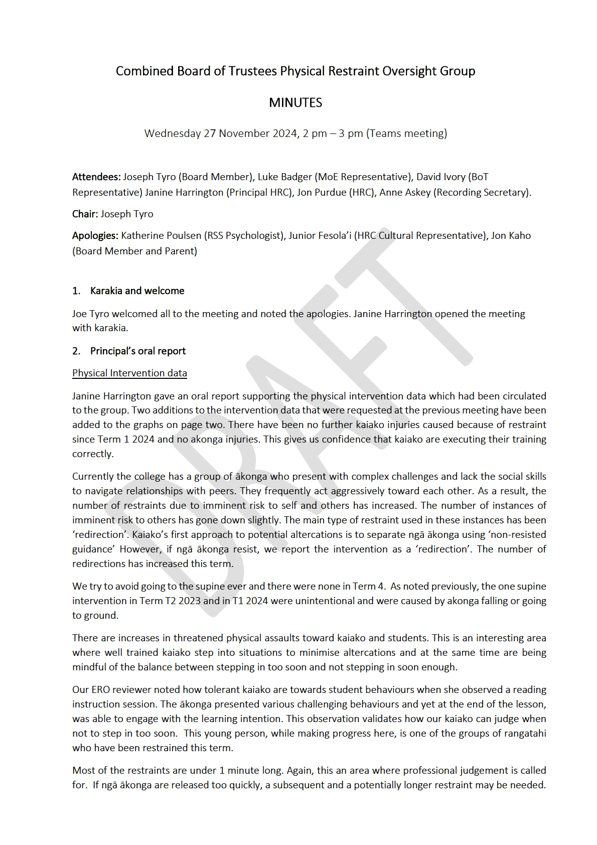 • Restraint Oversight Committee Minutes November 27