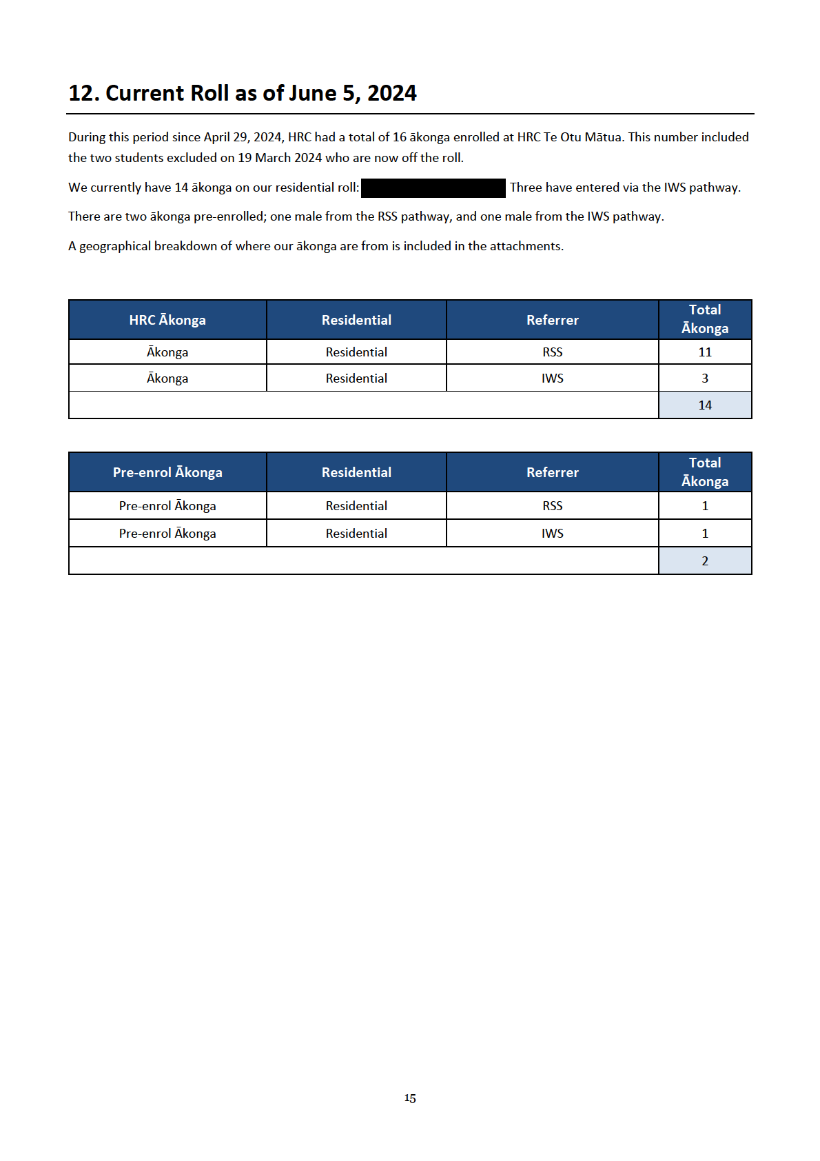 • Geographical Breakdown of Residential Akonga