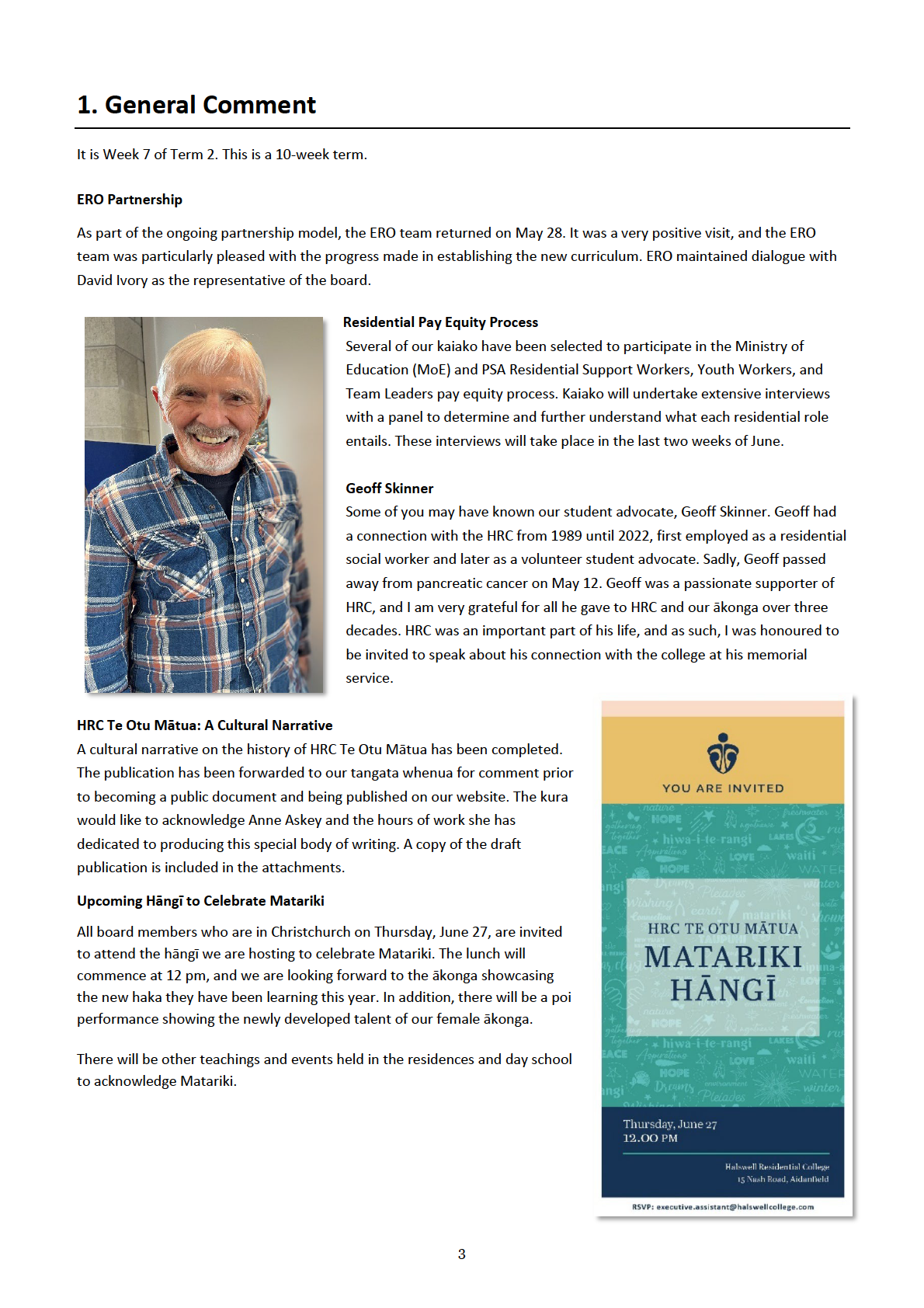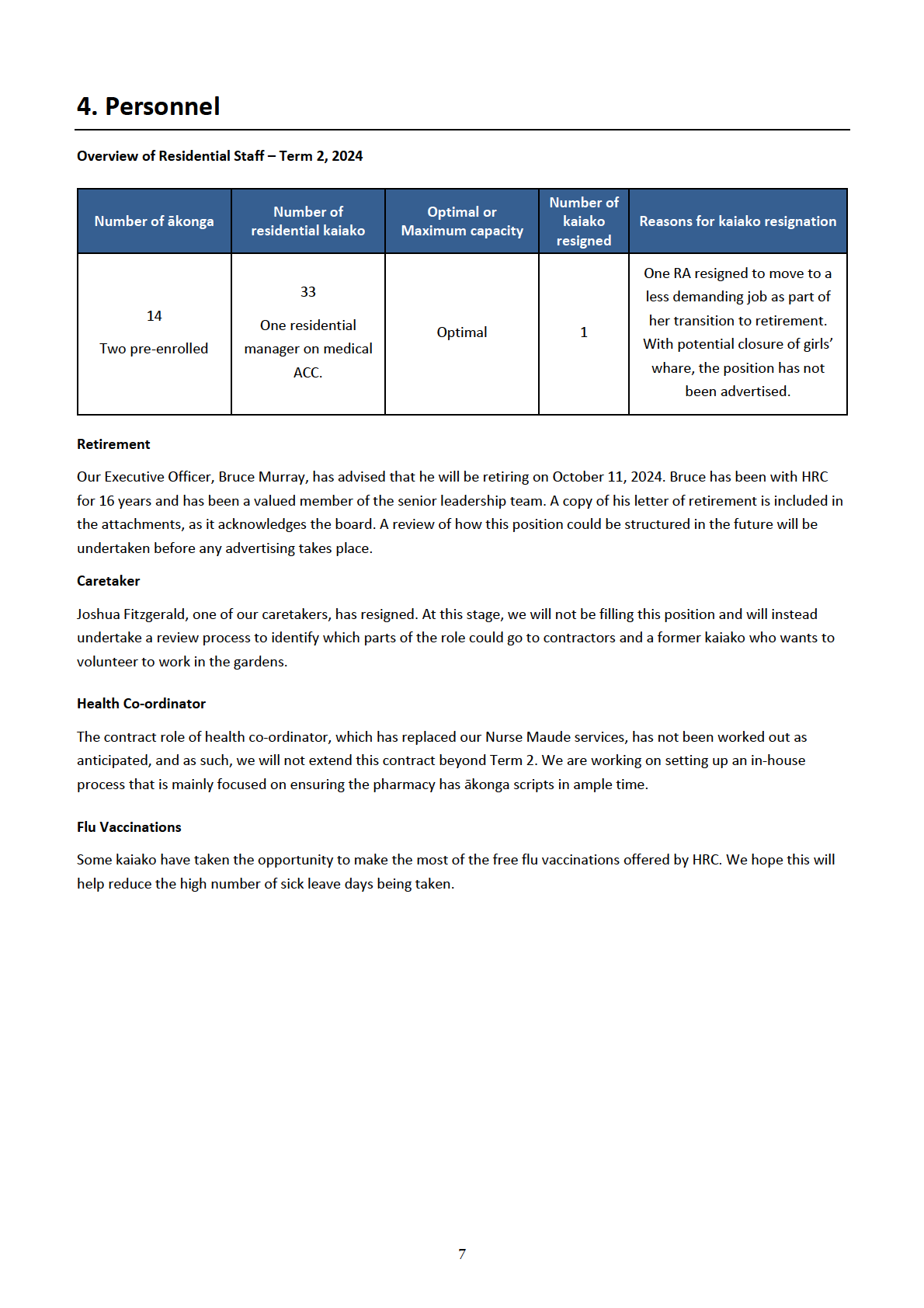 HRC Principal’s Report to the Board of Trustees