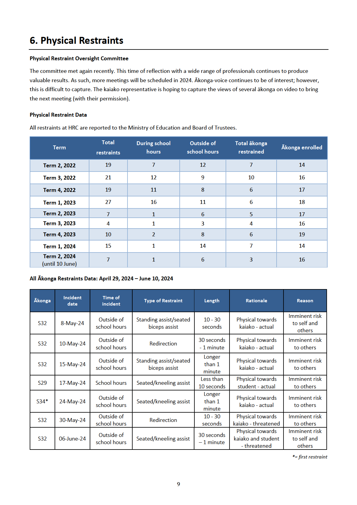 Rationale of restraint - Term 2 2024