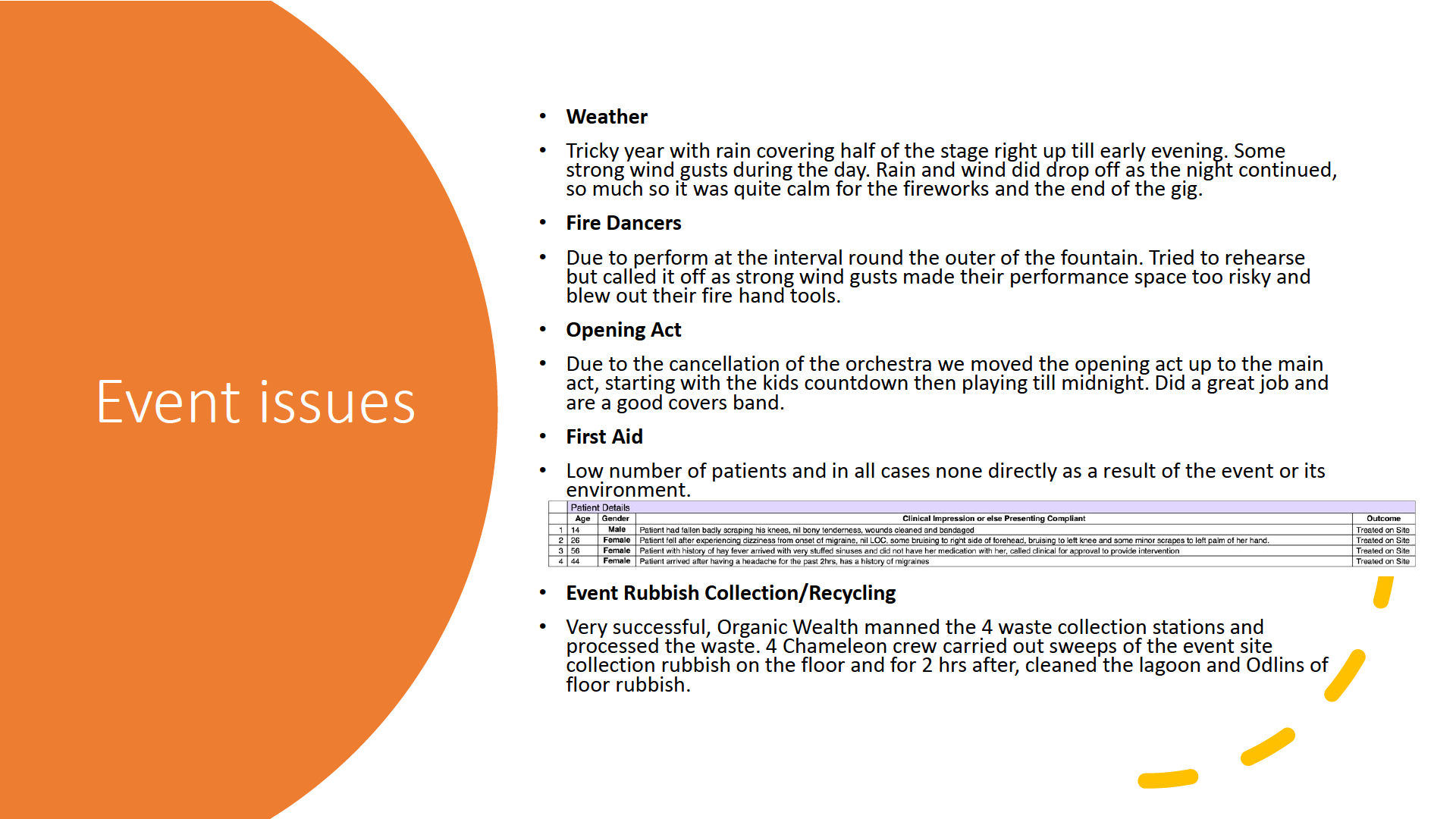 • Main midnight fireworks went off fine. Wind had dropped so went smoothly.