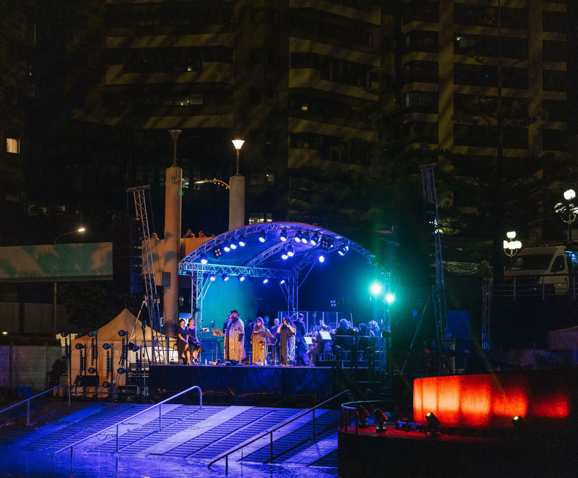 Potential to use NYE set up for a NYE concert or just DJ’s playing in the sun.