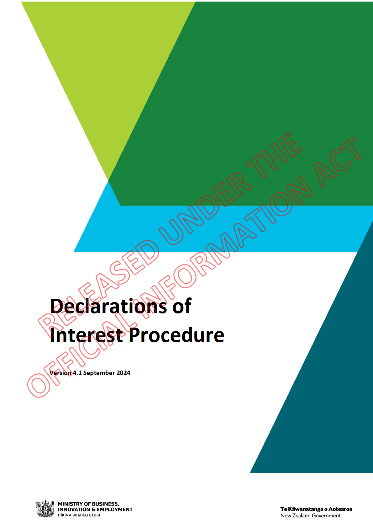 ensure that conflicts of interest for MBIE staff involved in the contract process (including Tender Evaluation