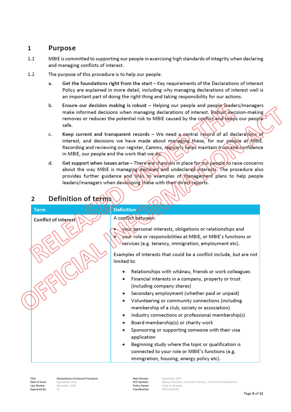 If you find that your professional obligations on a topic or issue are, or could be, a conflict of duty with MBIE,