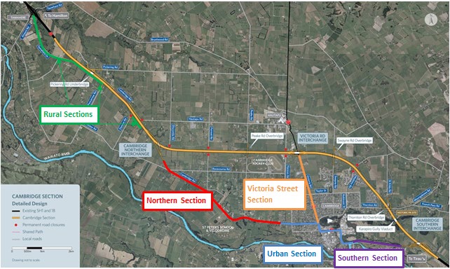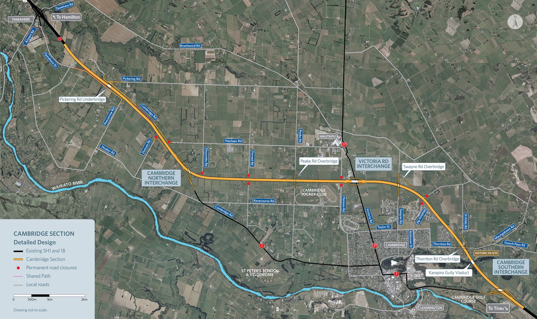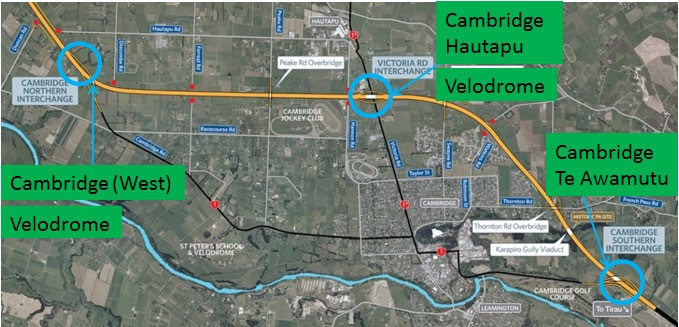 • Interchange with Tirau Road – The eastern-most interchange of the Cambridge section and