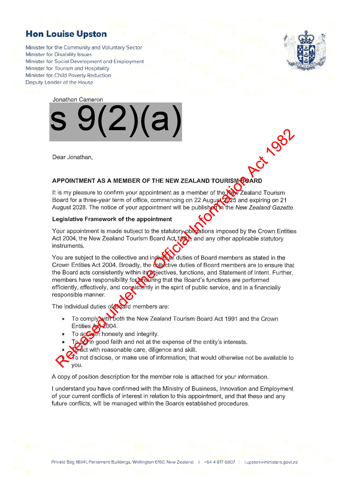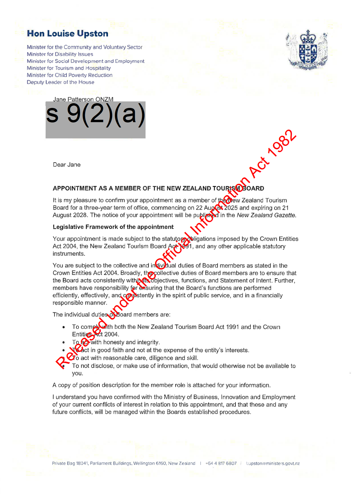 Job Title: Tourism New Zealand Board - Strategic Finance role