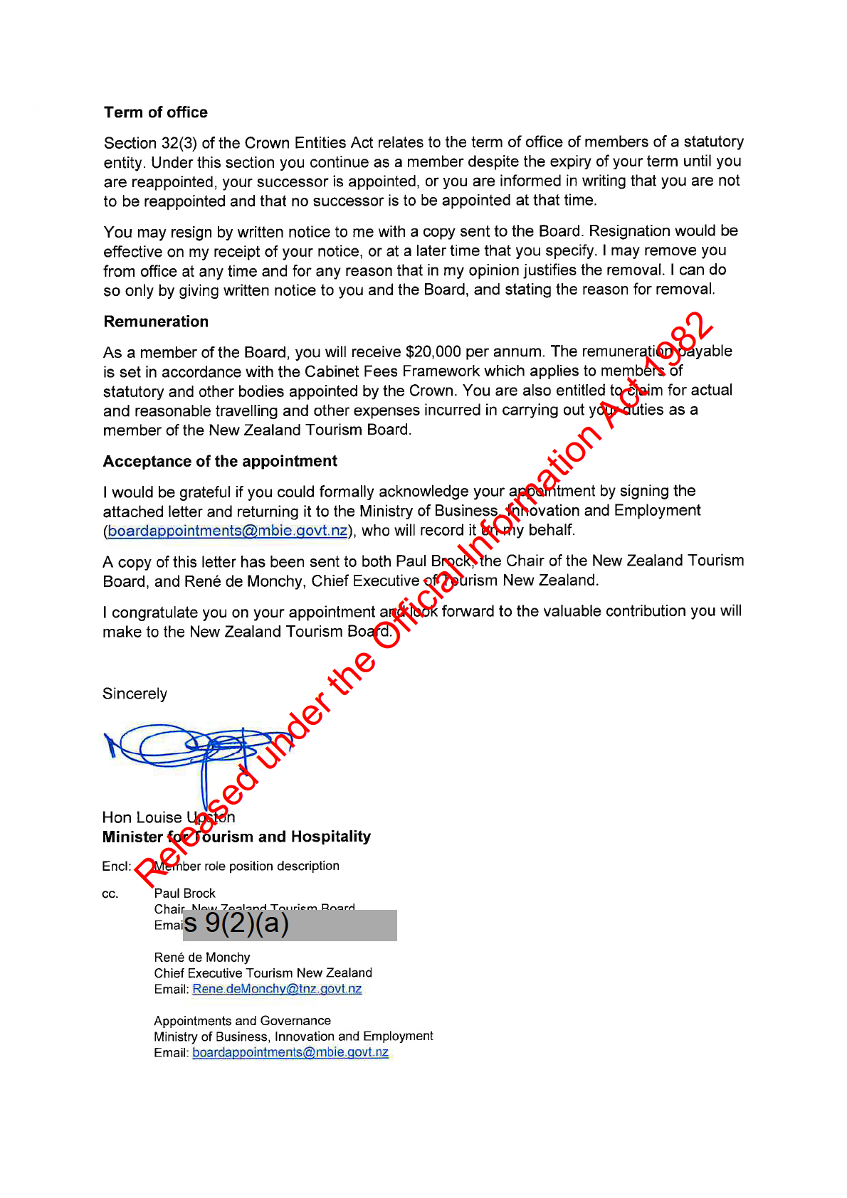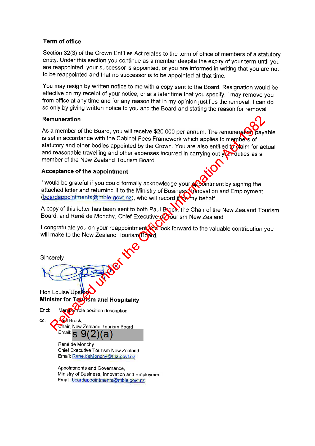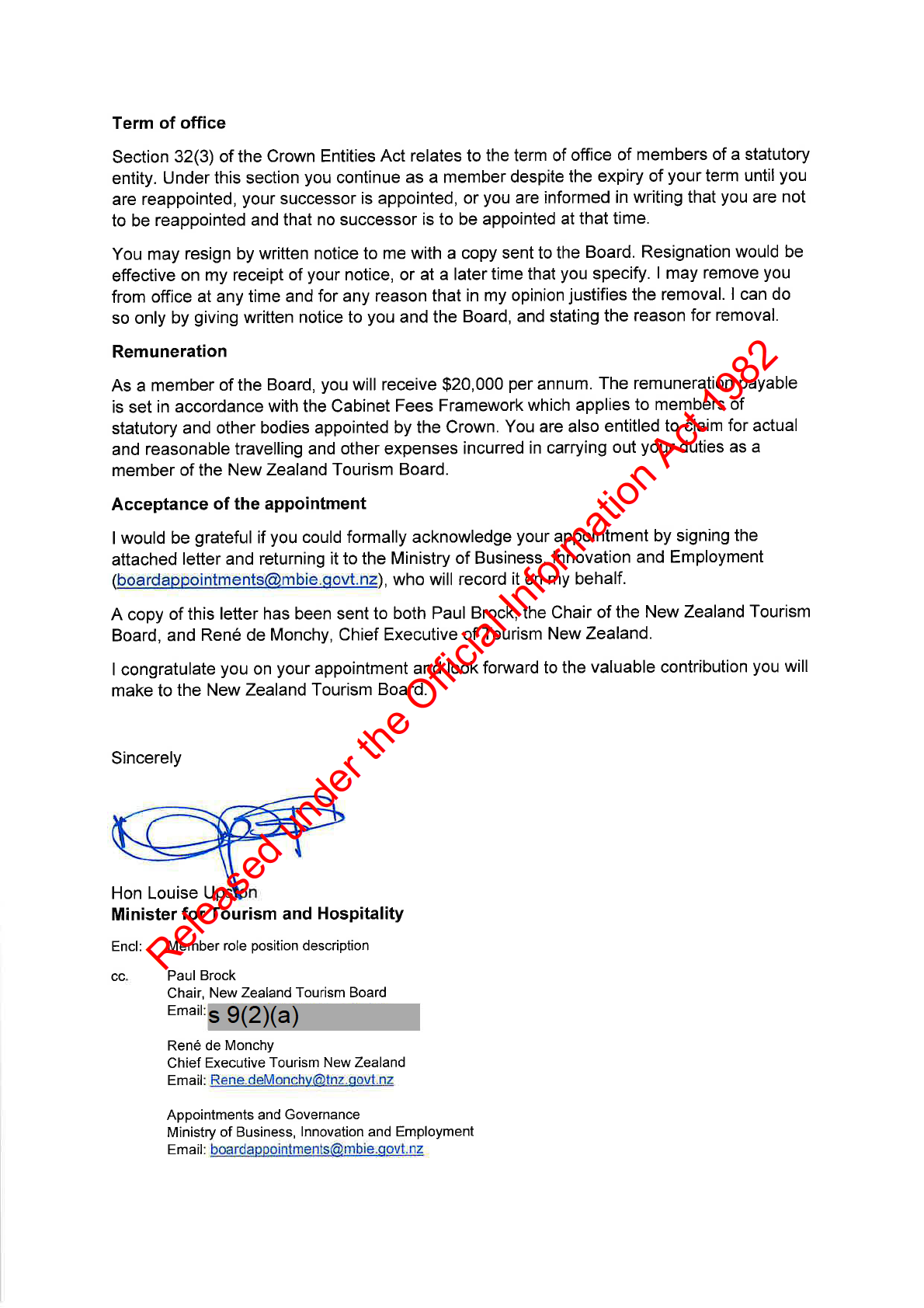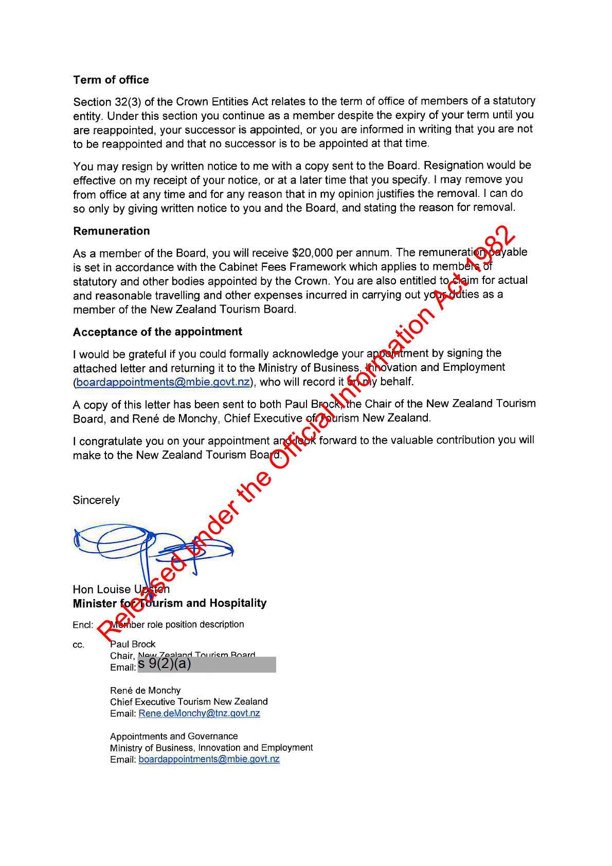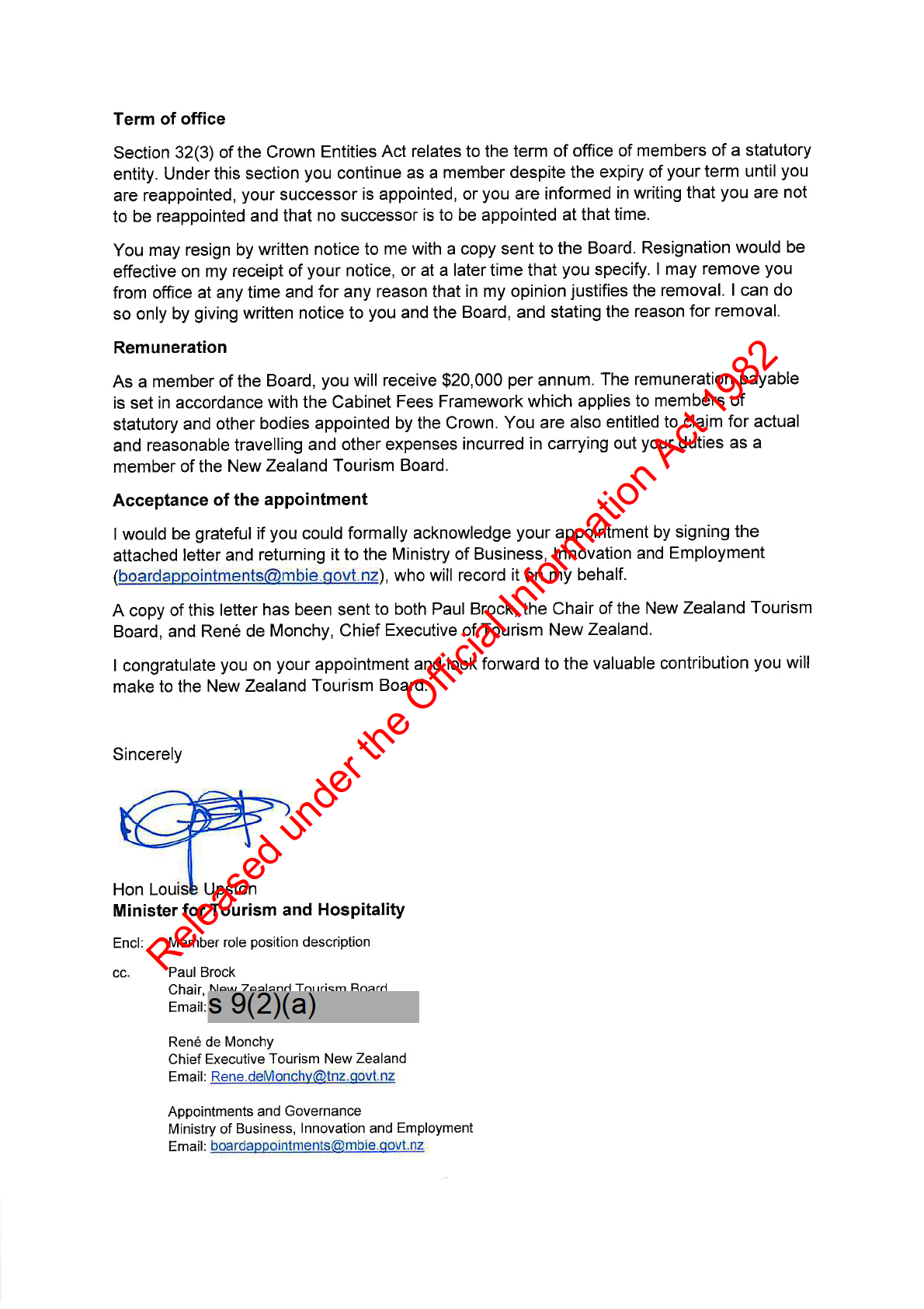 Minister of Tourism and Hospitality for terms of up to three years. Members may be reappointed on the expiry of
