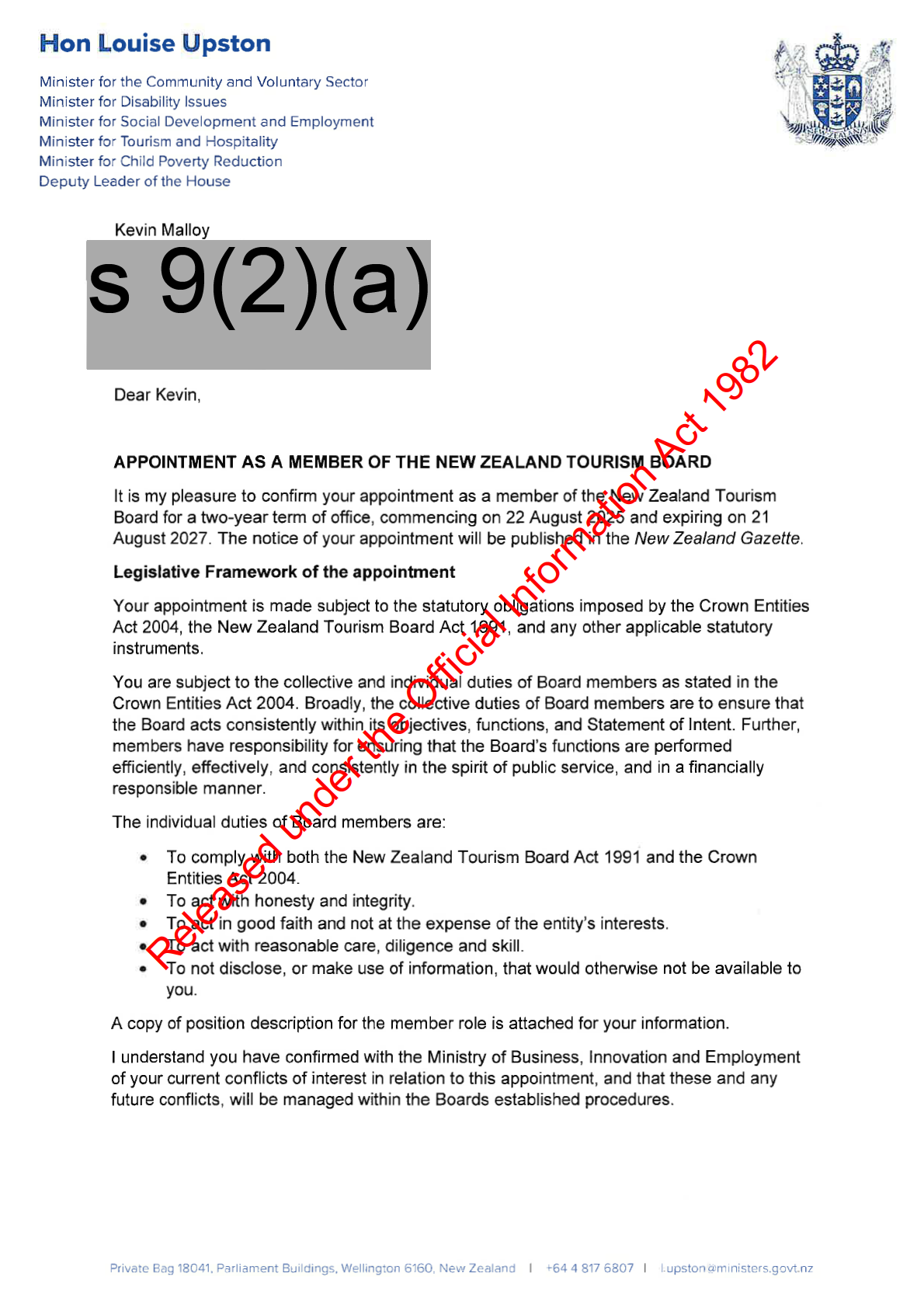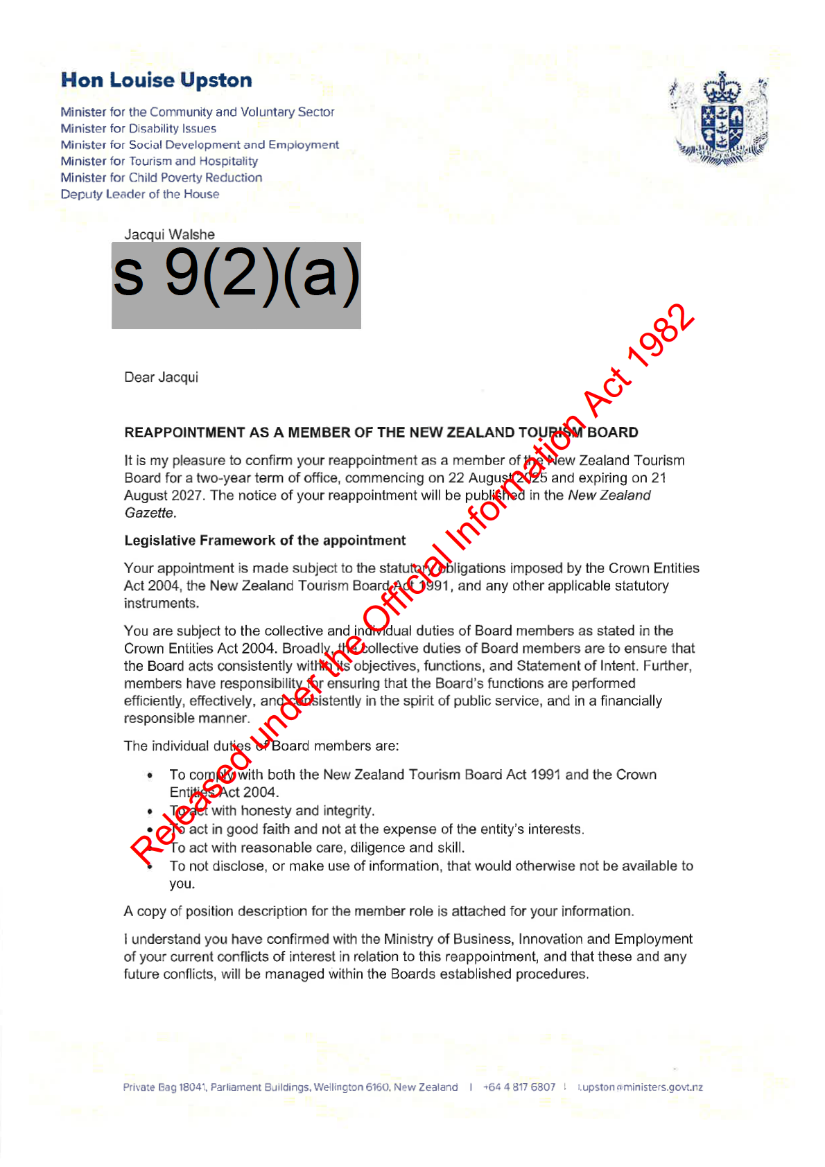 Job Title: Tourism New Zealand Board - Regional Tourism role