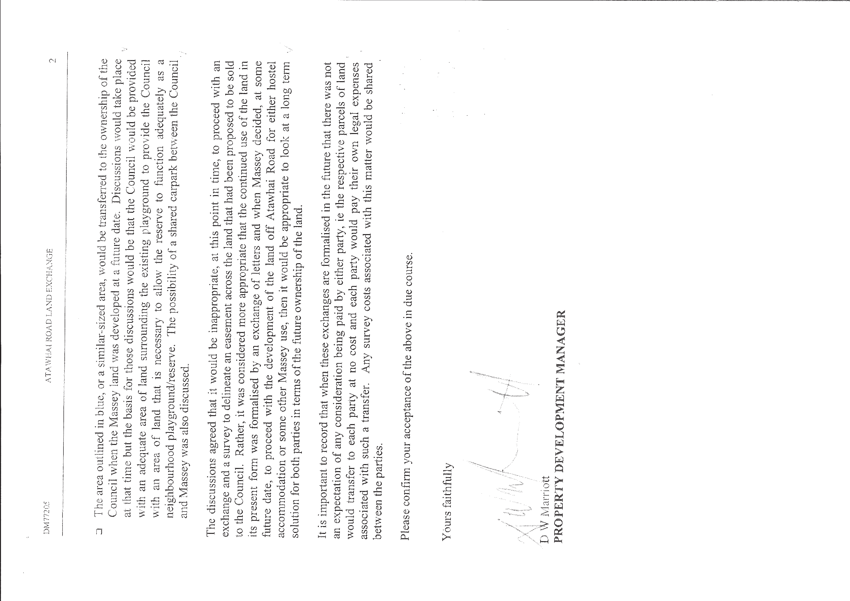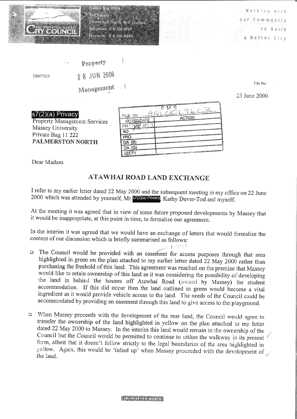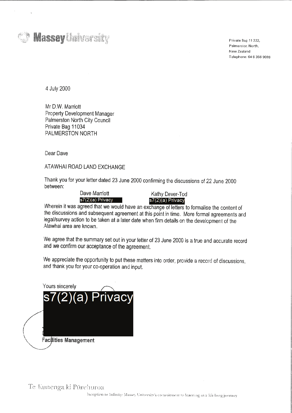 I am pleased to enclose Massey’s statement in support of the Atawhai land exchange.