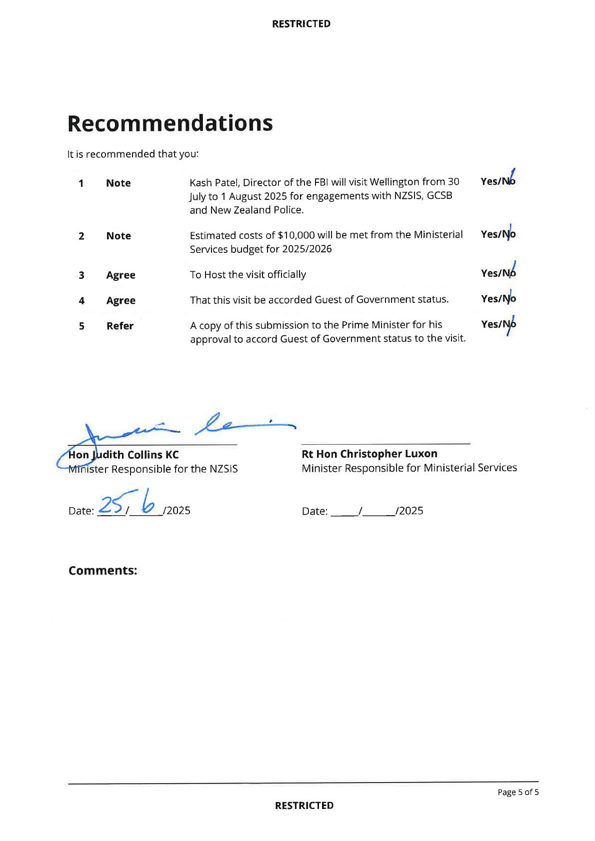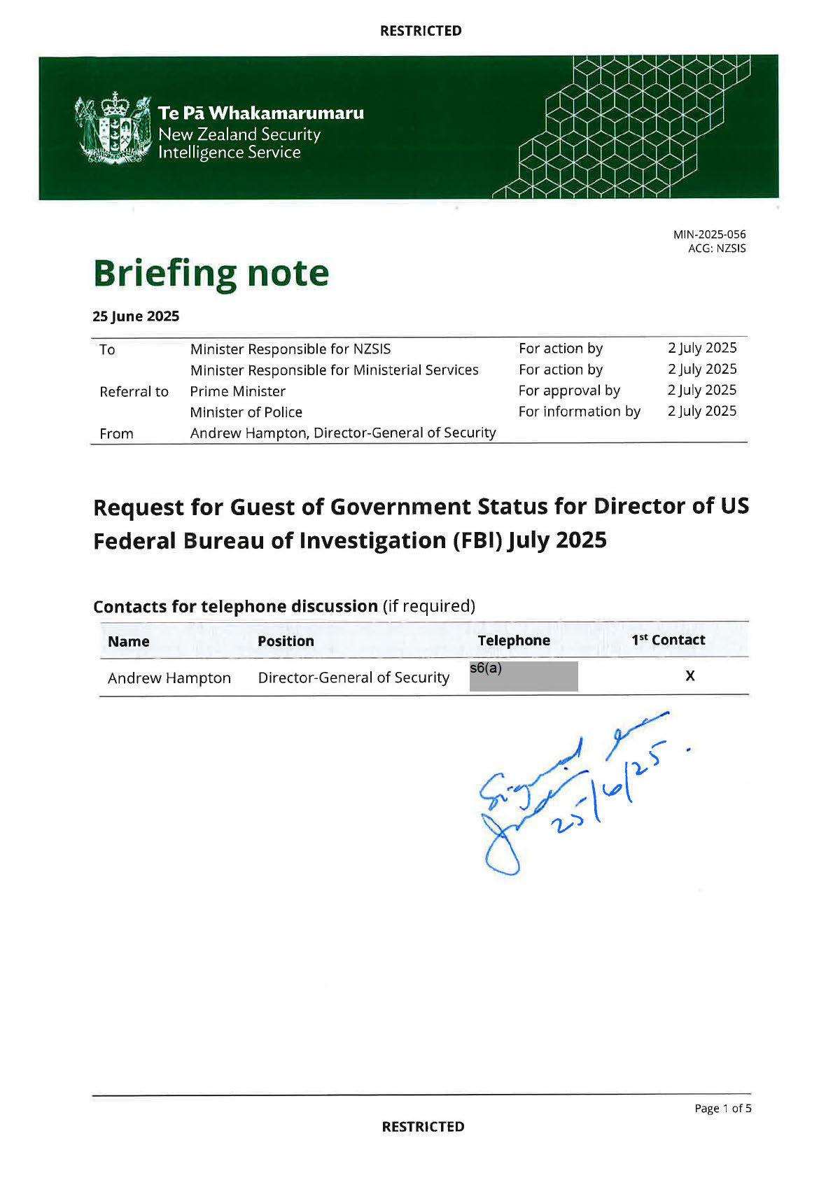 Released under the Official Information Act 1982