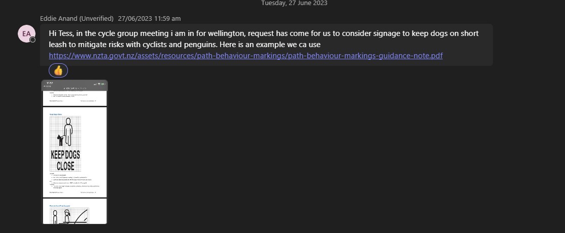 Please see below summary of our anƟcipated approach re Dog control for the Te Ara Tupua shared path. Could you please share with Brad