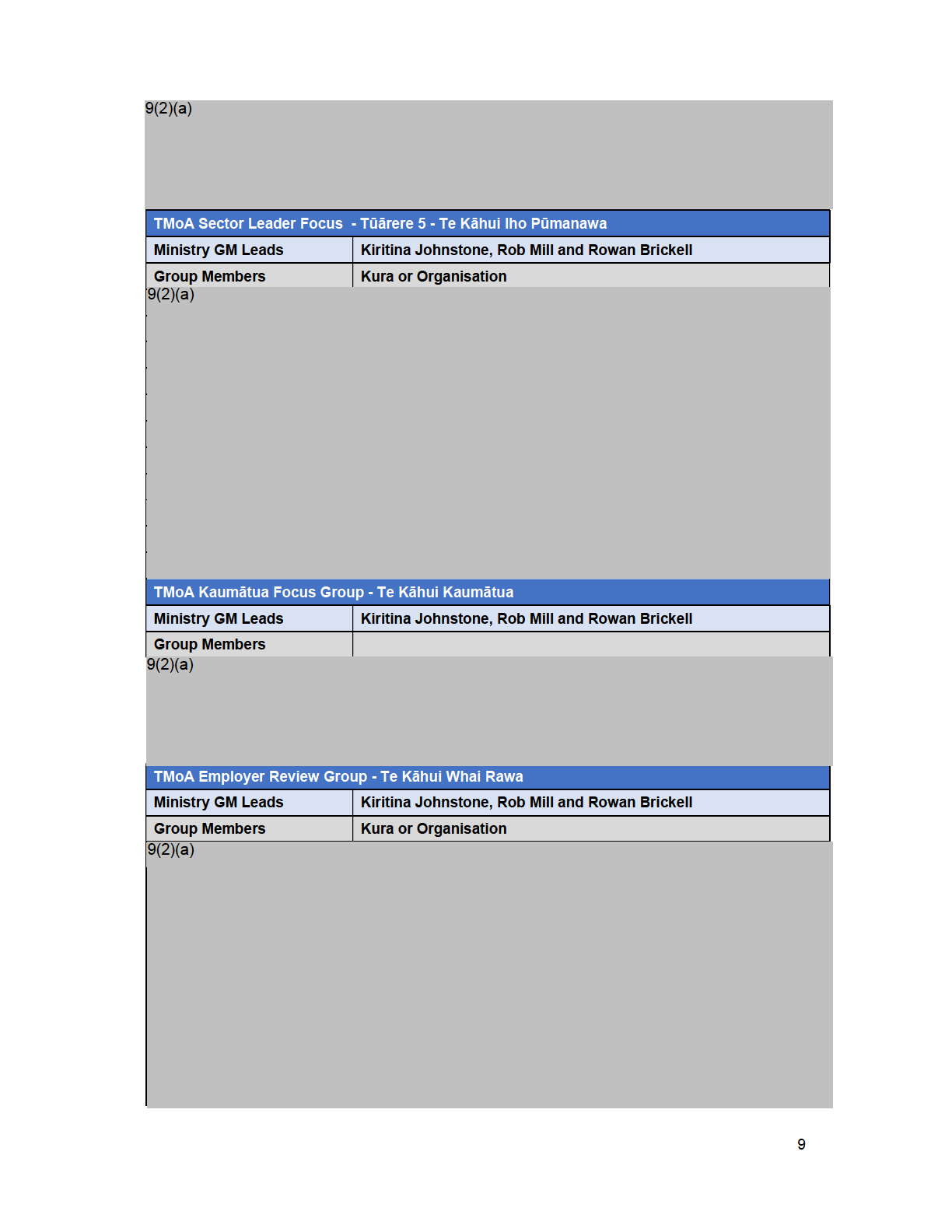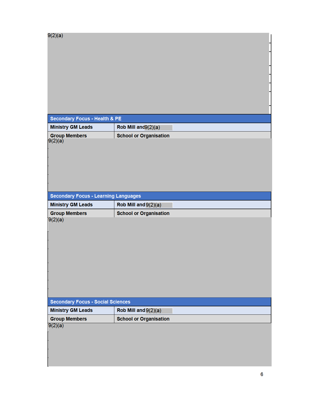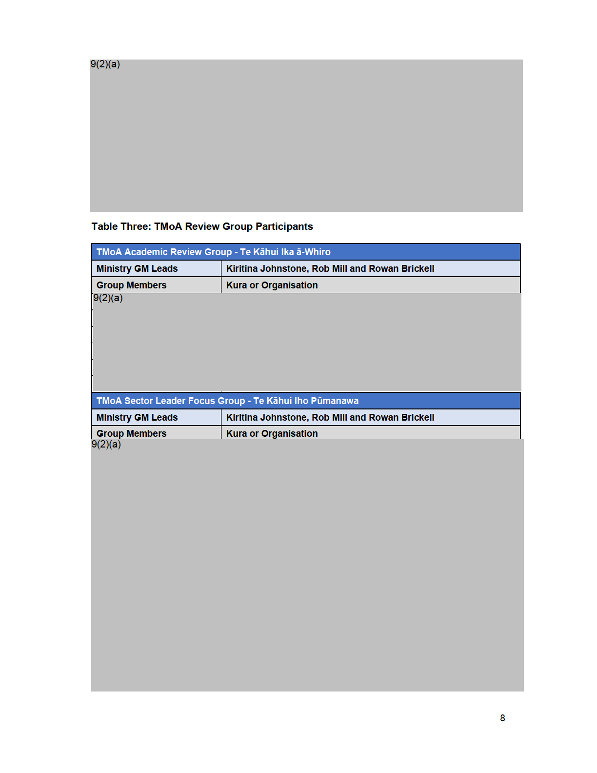 Participants for each of the review groups are listed in table two for the NZC and table three