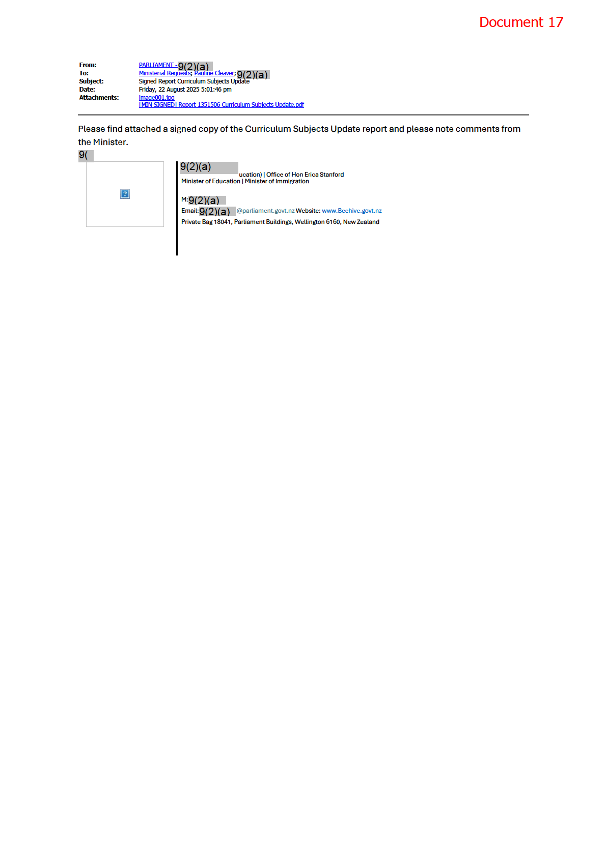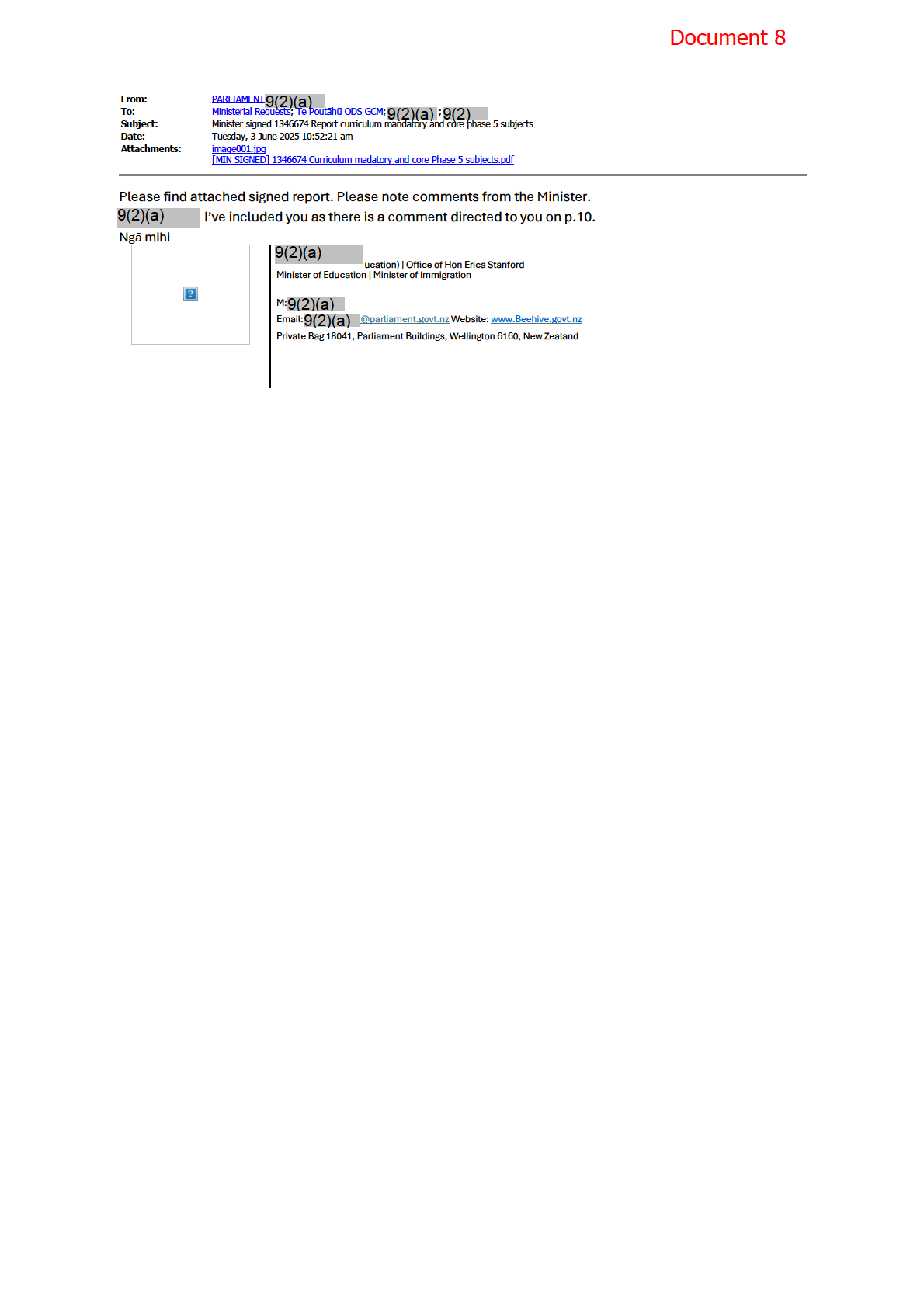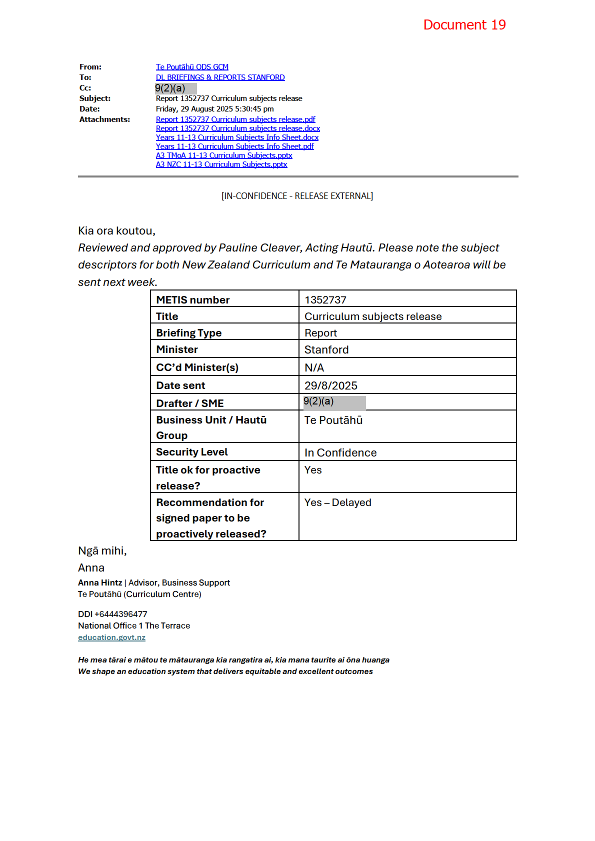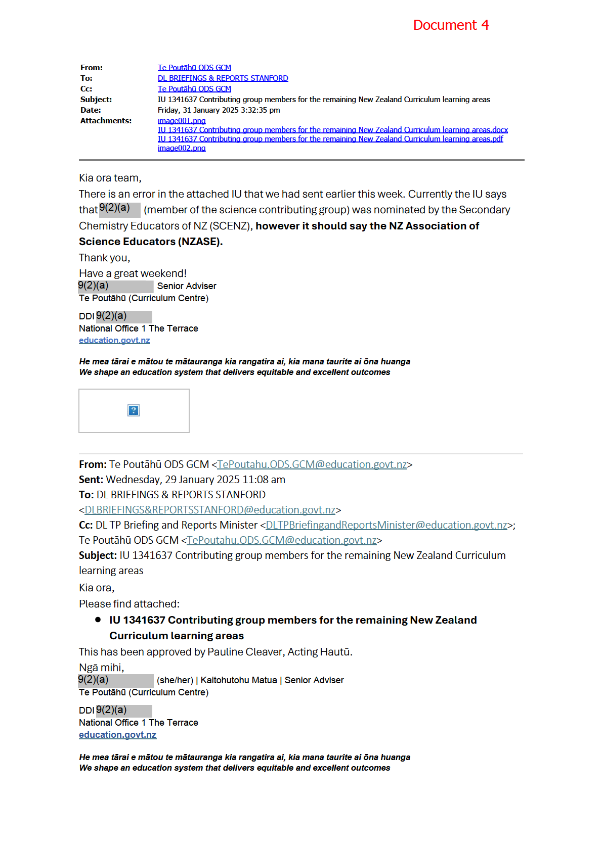 On 4 December 2024, we provided you with an Education Report on the revised curriculum