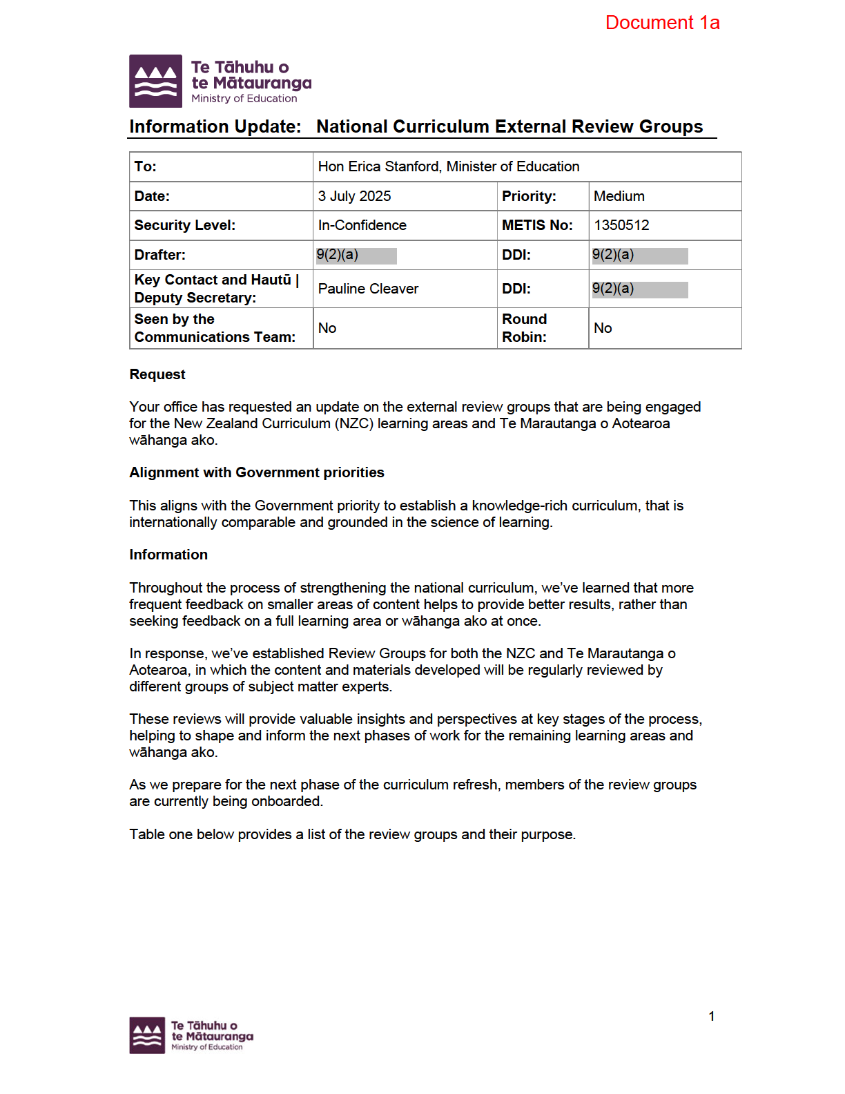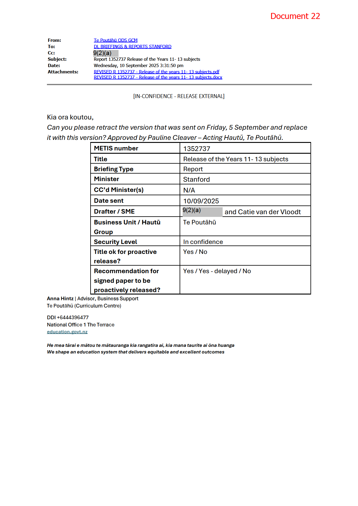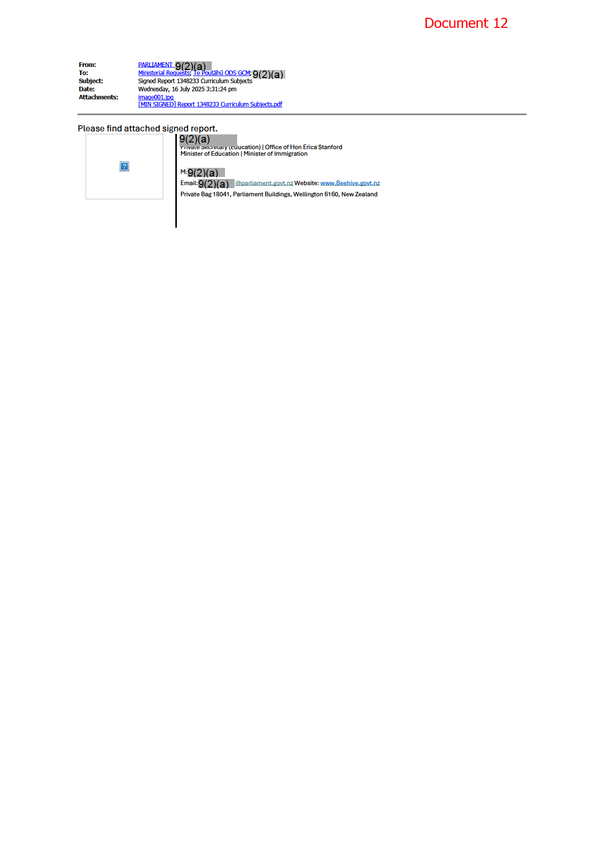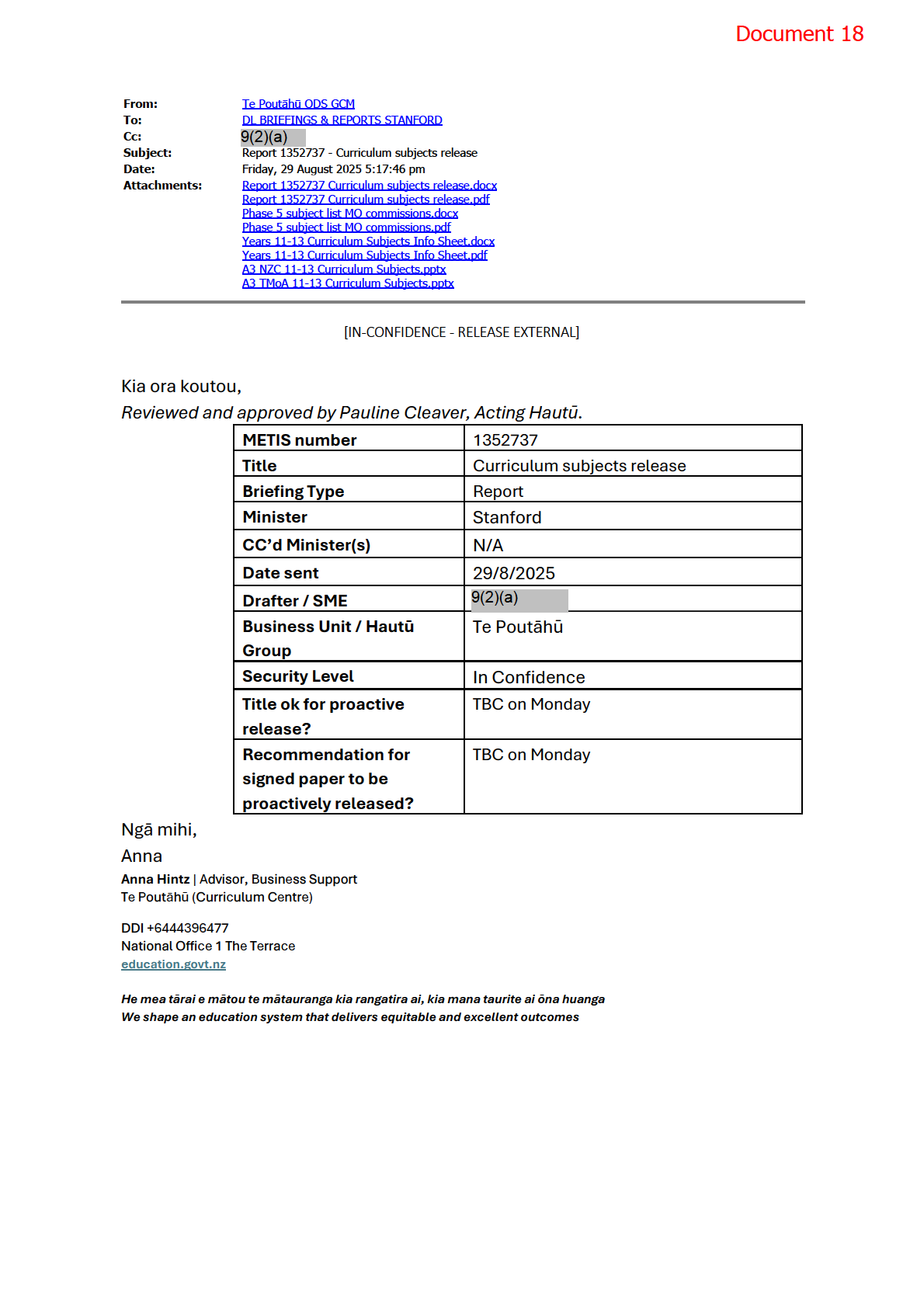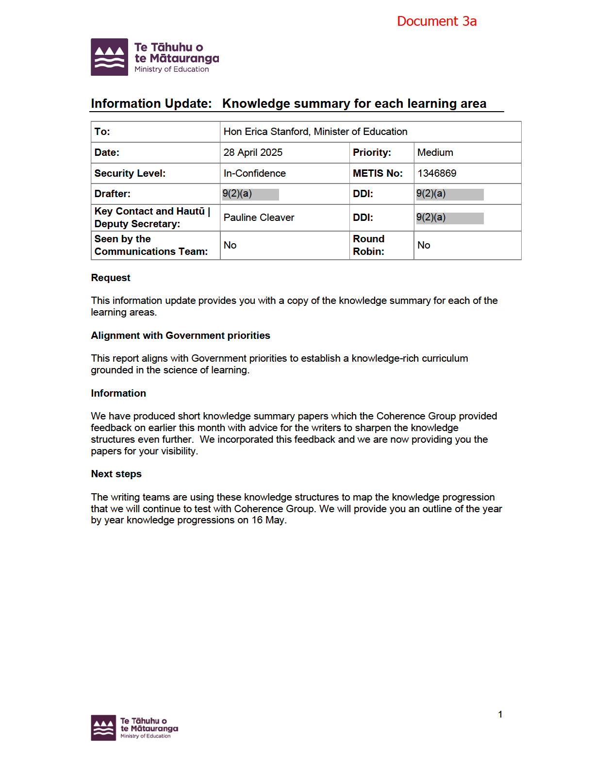 On 4 December 2024, we provided you with an Education Report on the revised curriculum