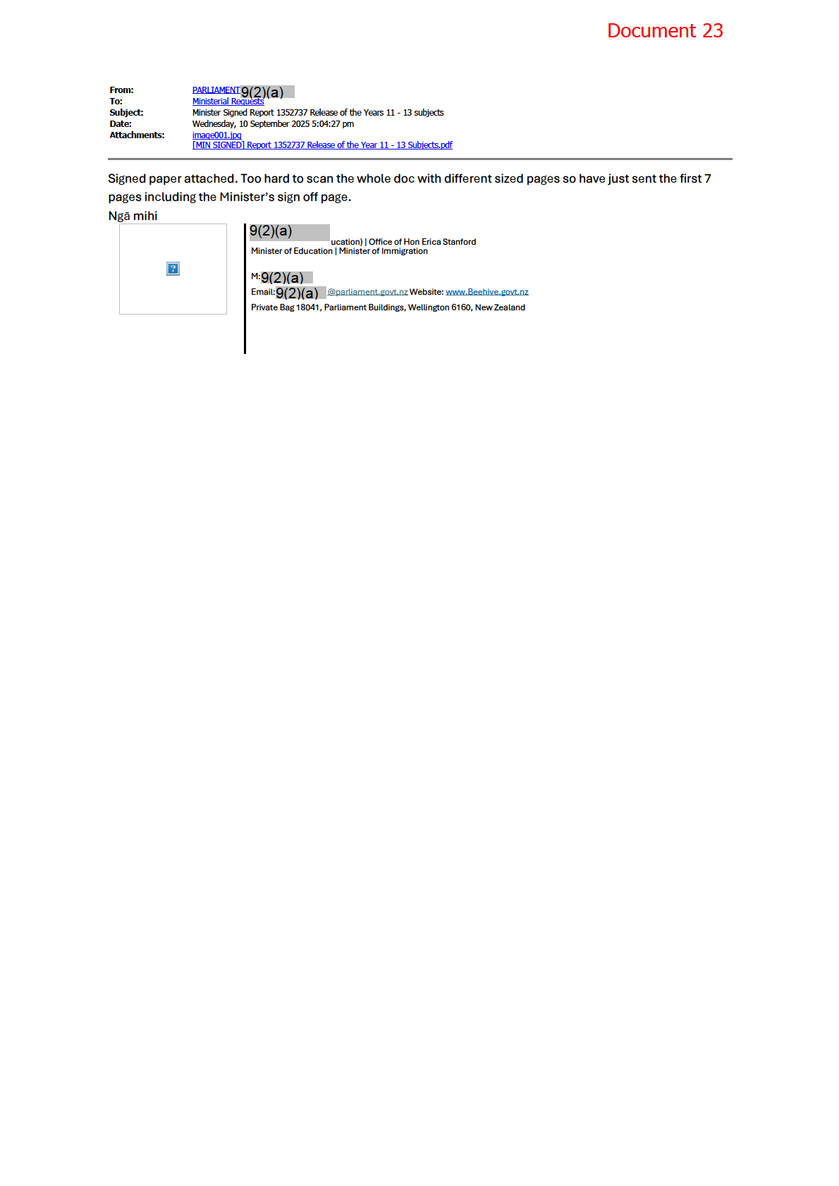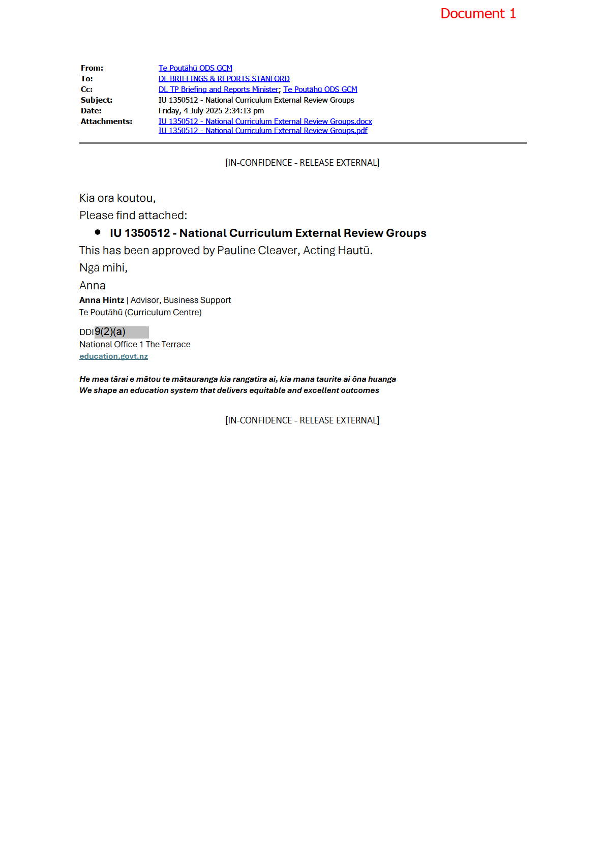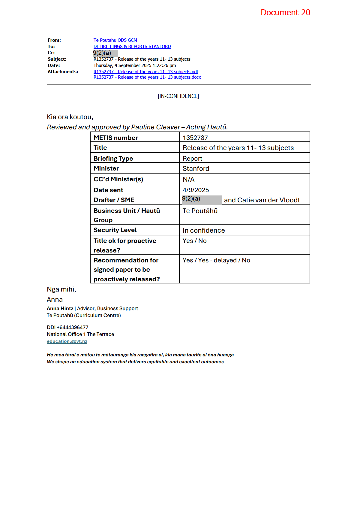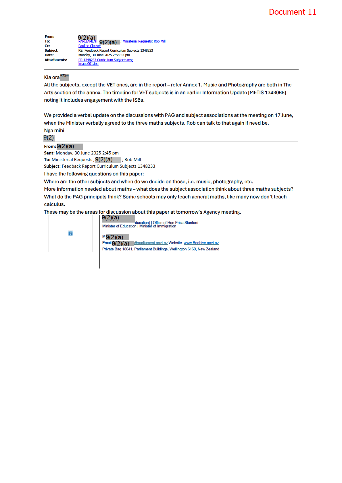 On 4 December 2024, we provided you with an Education Report on the revised curriculum