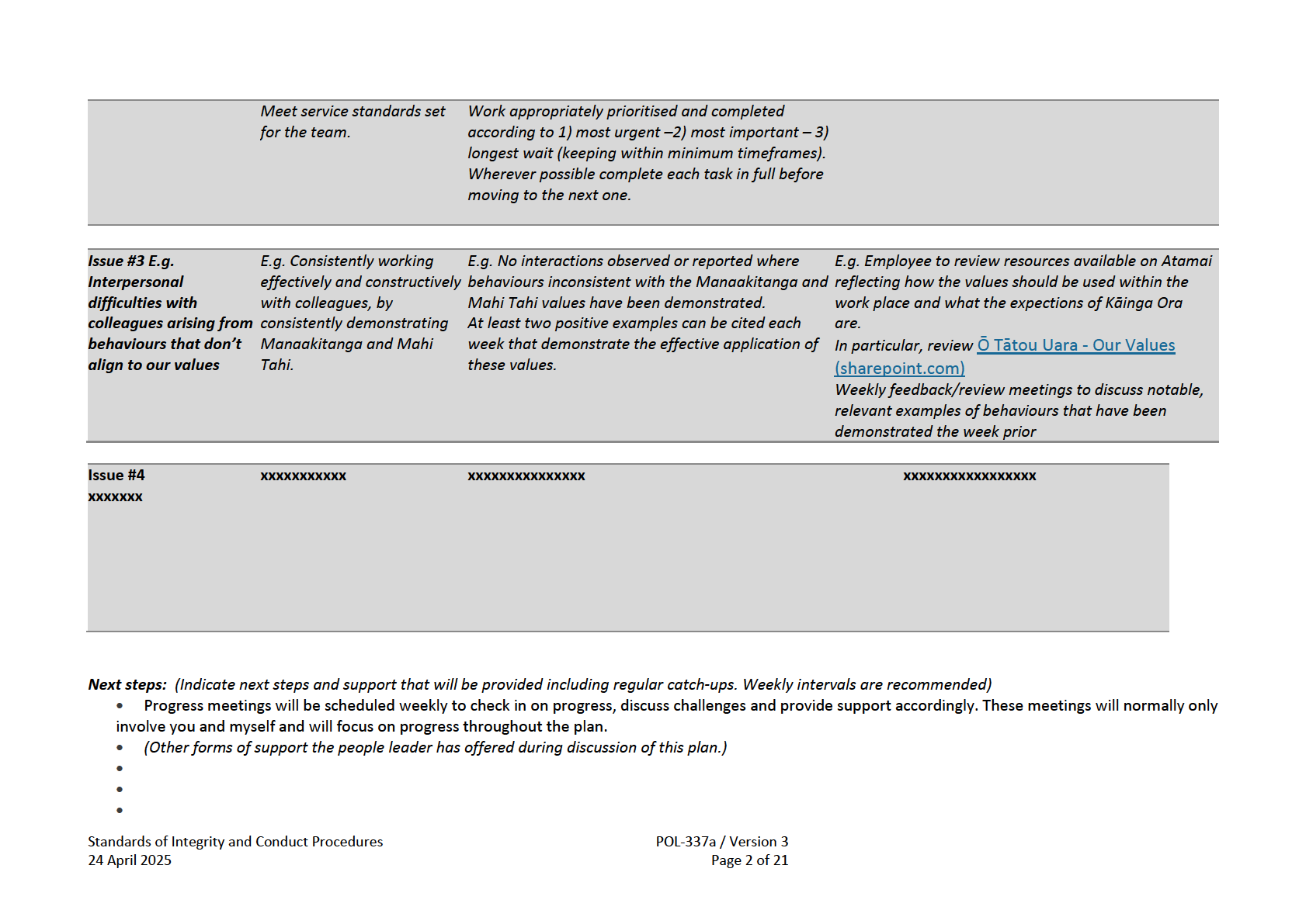 performance, behaviour/values or conduct/integrity that may not meet the requirements