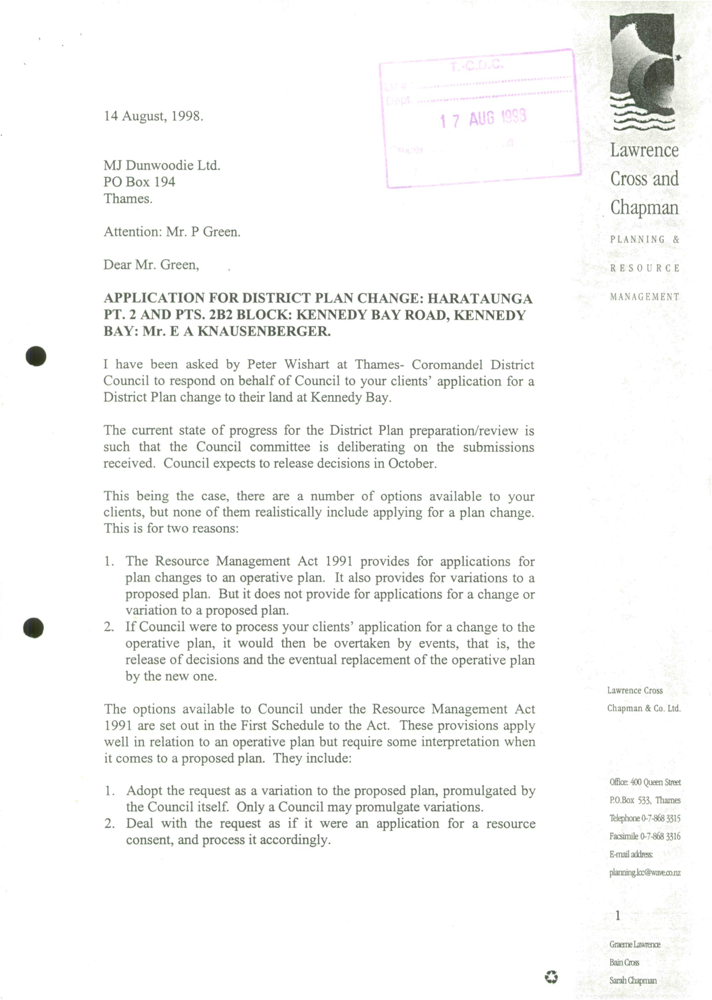 Denis  Stapleton,  Tuateawa  resident  attended  the  meeting  to