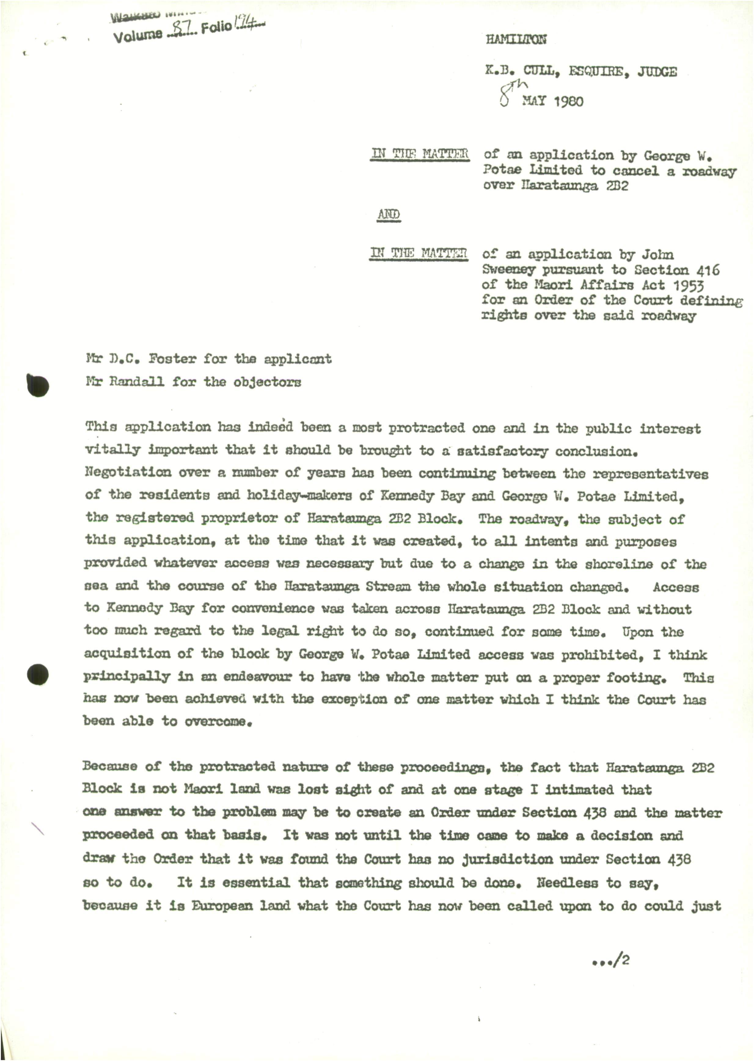 condition  of  Kennedy  Bay  Road  to  cope  with  the  proposed