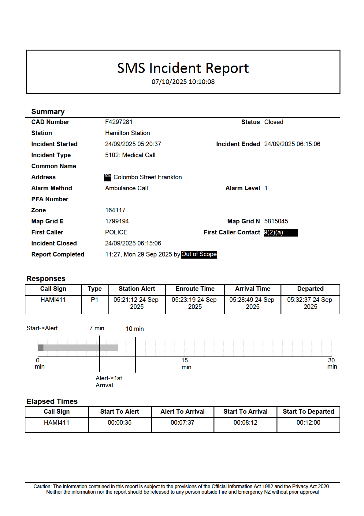 Neither the information nor the report should be released to any person outside Fire and Emergency NZ without prior approval