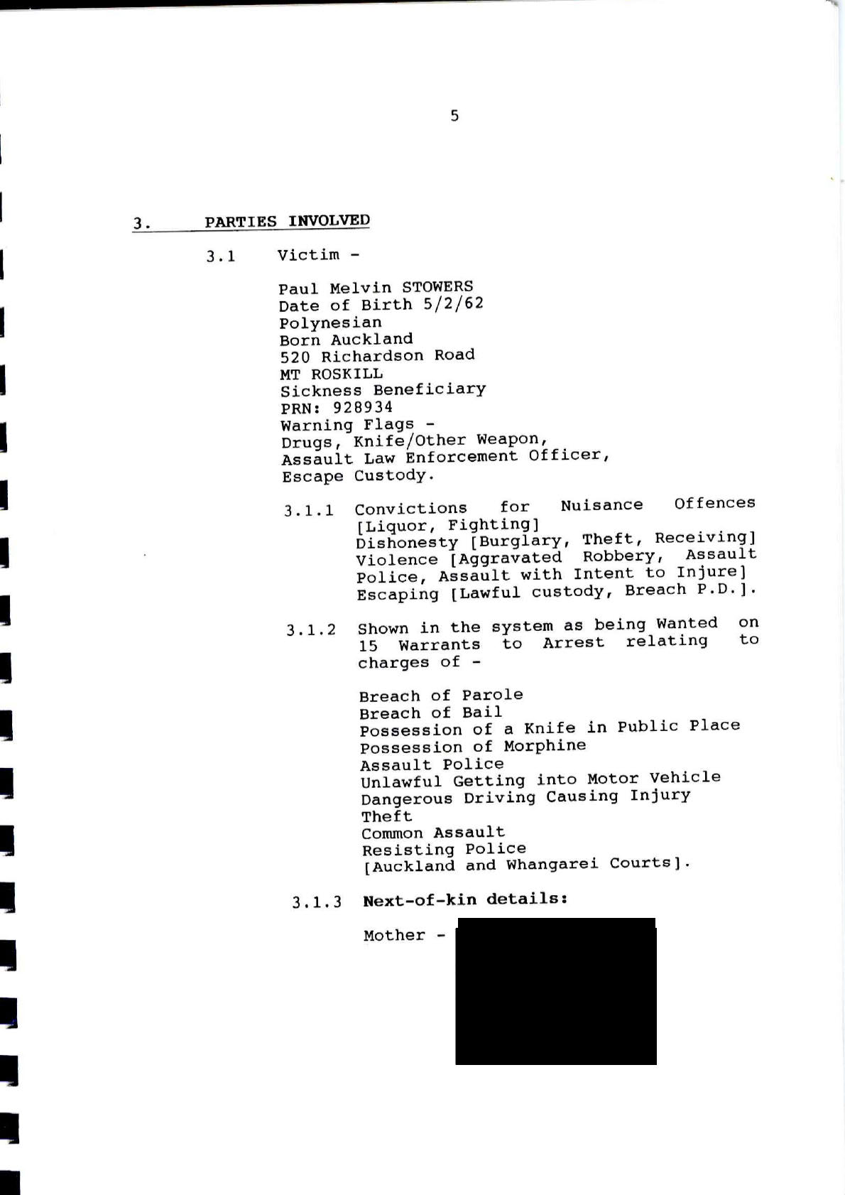 Police record for Paul Melvin Stowers (d 25/10/90)0)
