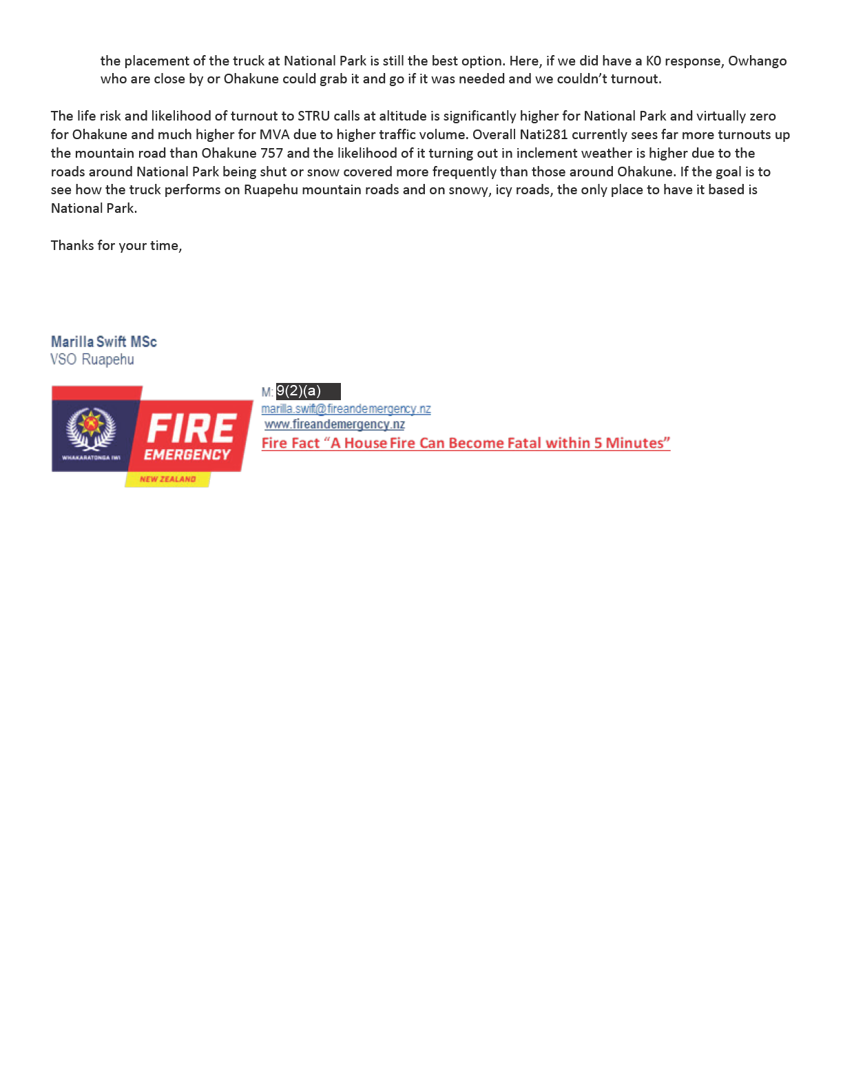 As Chief of National Park Fire brigade, I am writing to you as a last e ort to appeal for a change in the decision to