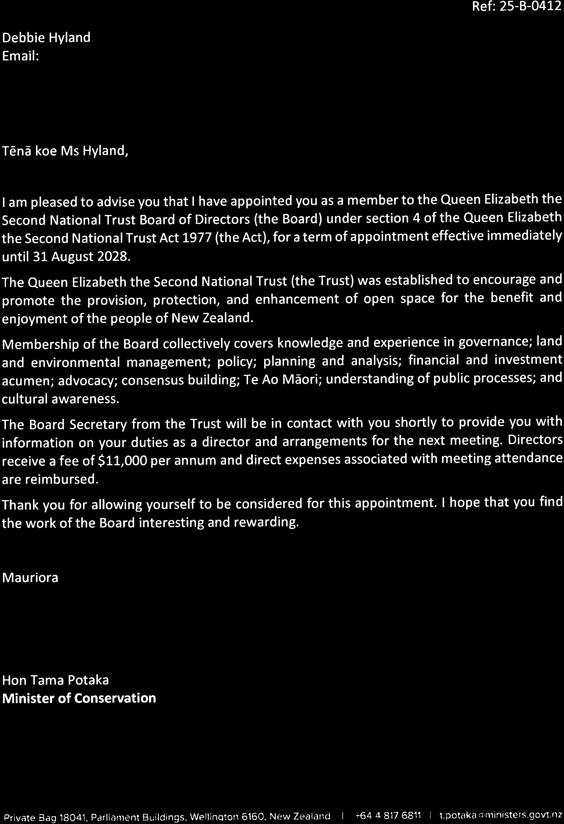 QUEEN ELIZABETH II NATIONAL TRUST BOARD OF DIRECTORS APPOINTMENTS