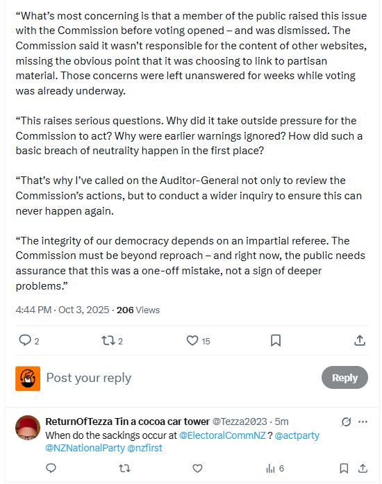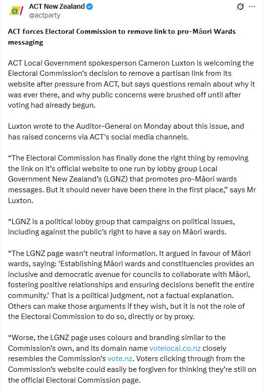 FYI: ACT Party post on X