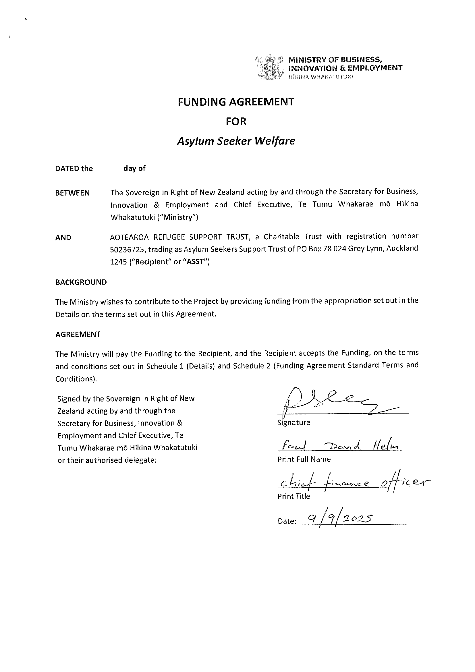 Asylum Seekers Support Trust (ASST) Funding Agreements since 2023