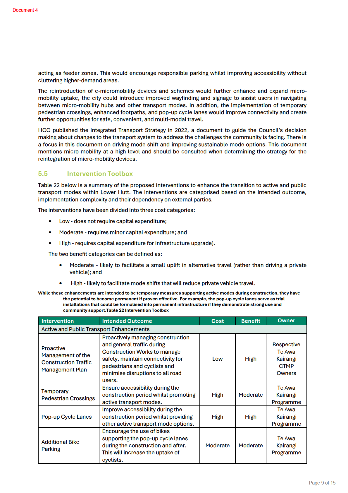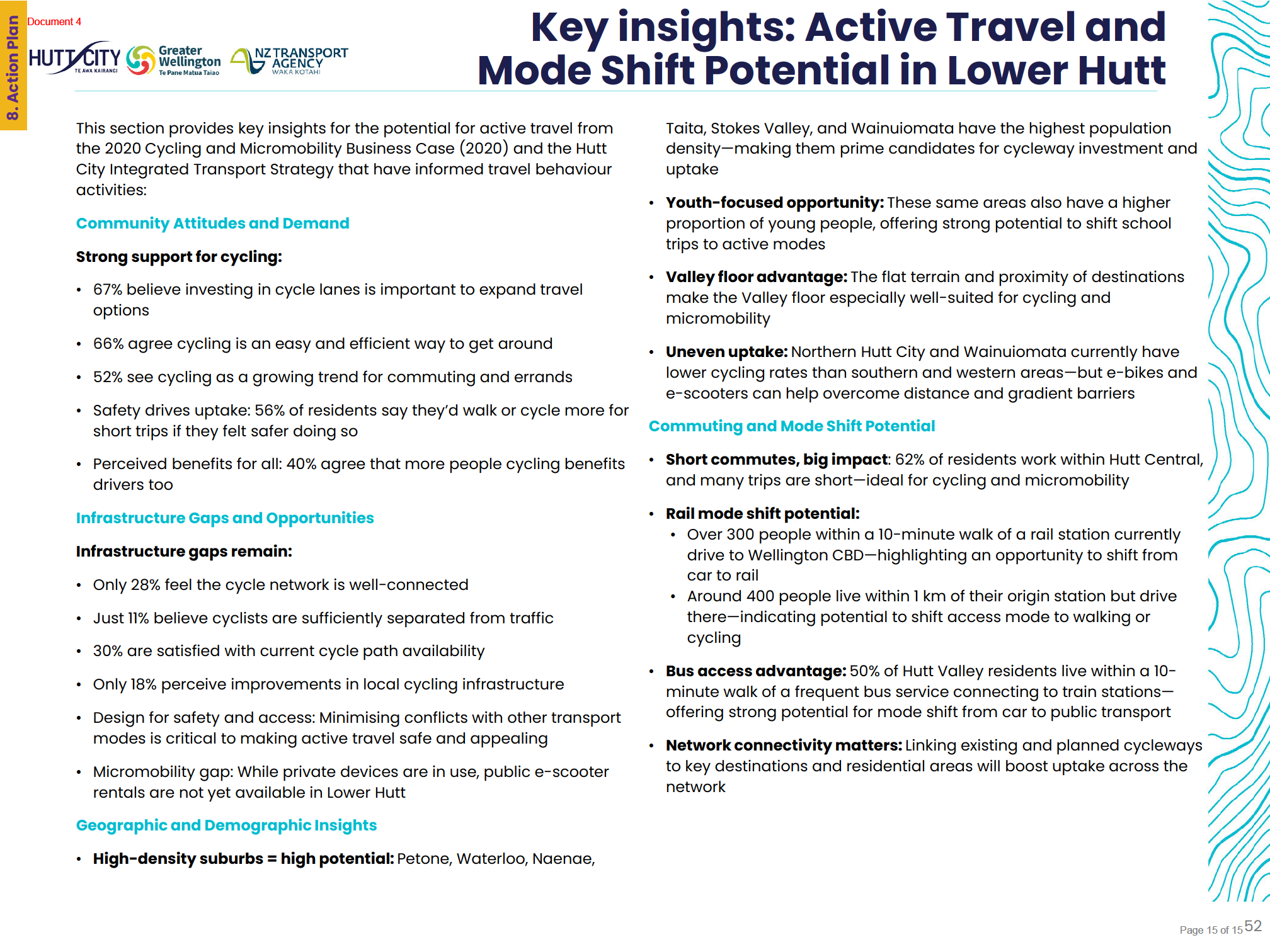 from vehicles to public or active transport within Hutt City, since 2020. You