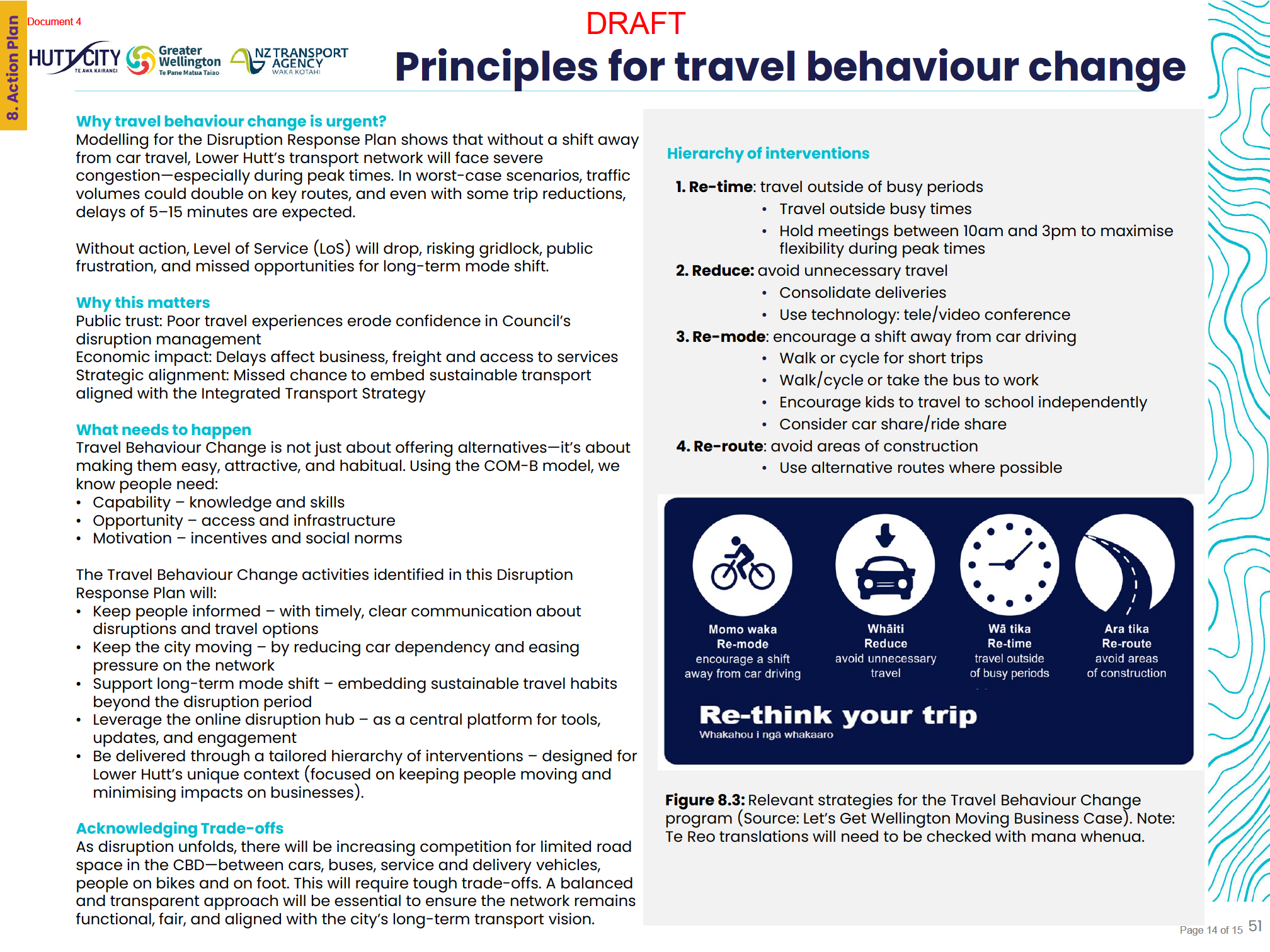 Funding to create workplace travel plans for local Naenae businesses can help facilitate mode shift in the wider