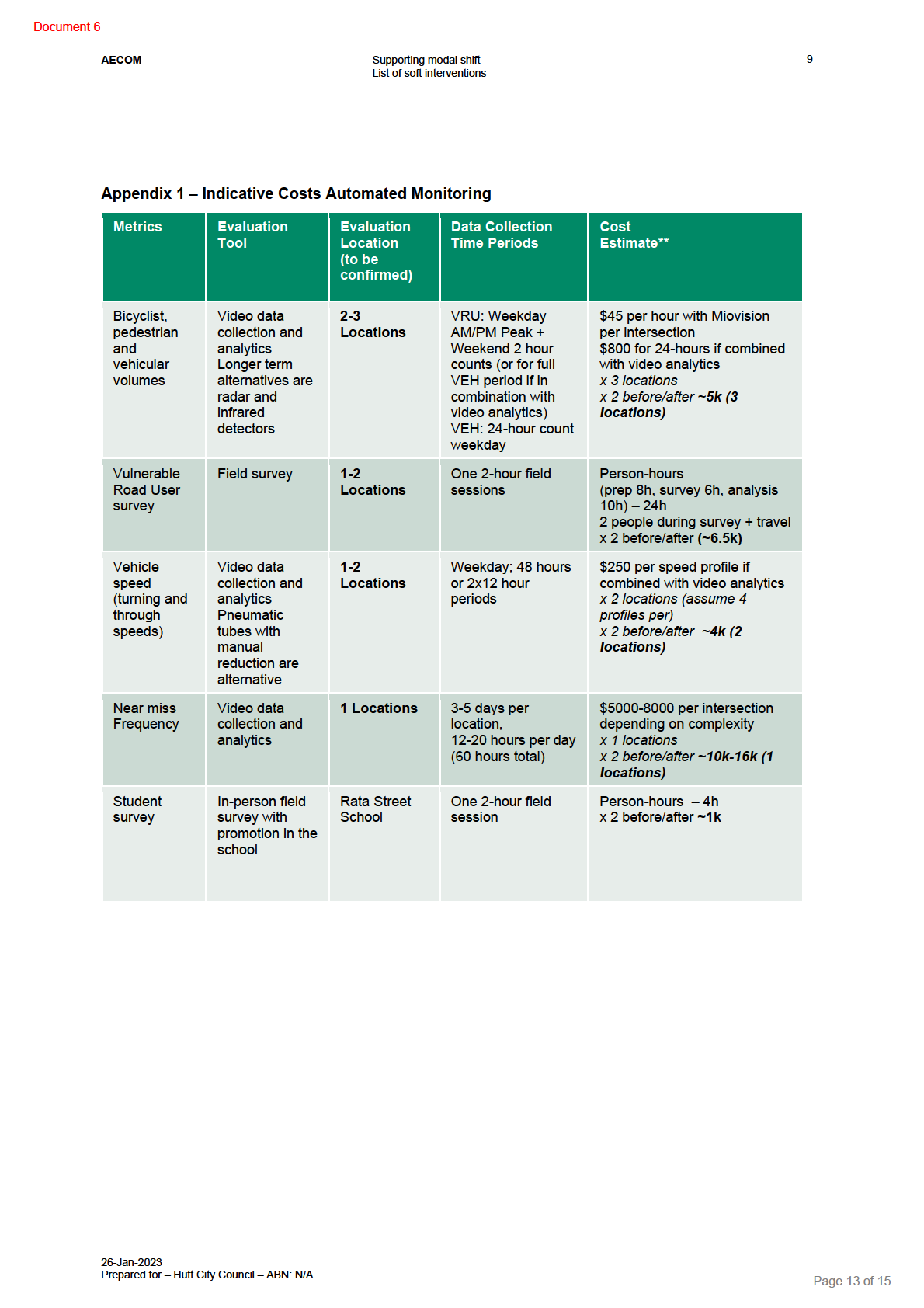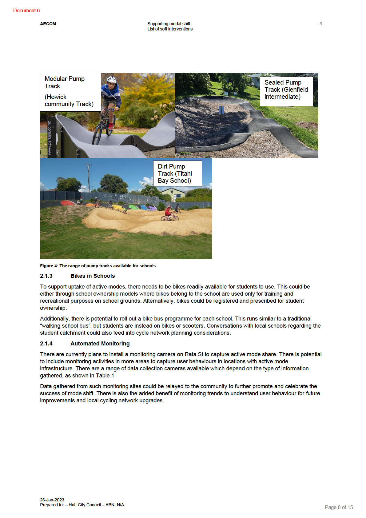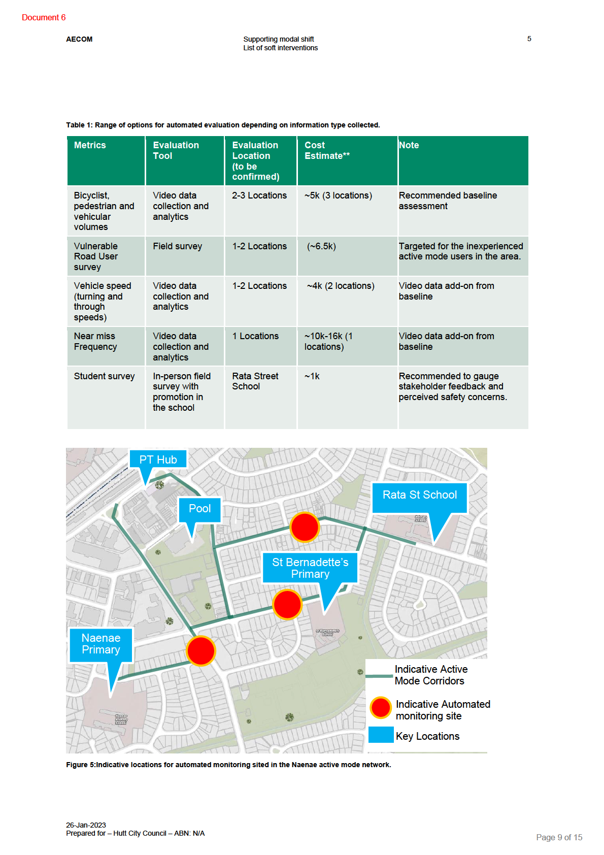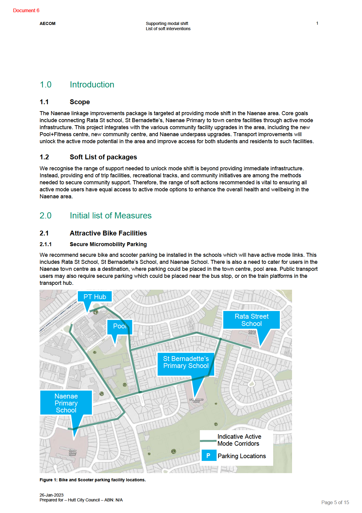 enable mode shift in the Naenae town centre or in local primary schools. These would inform the public of the