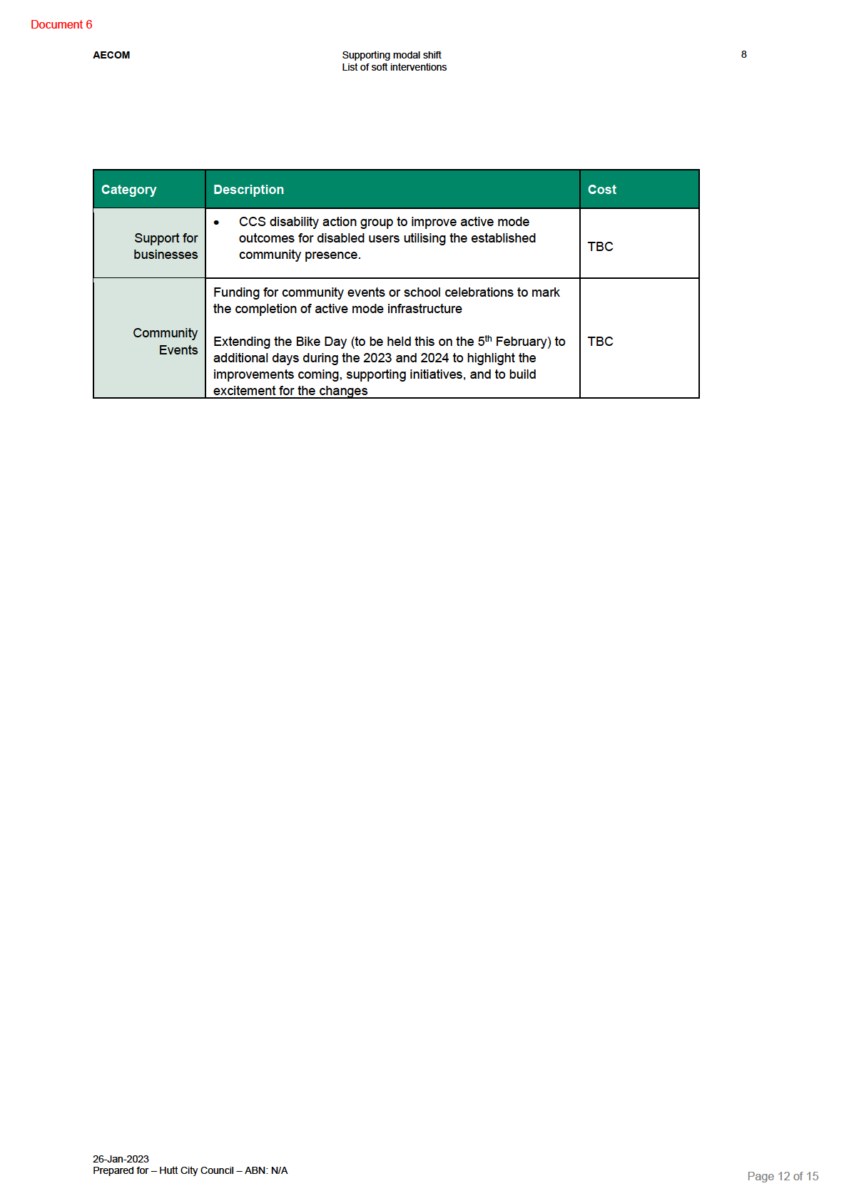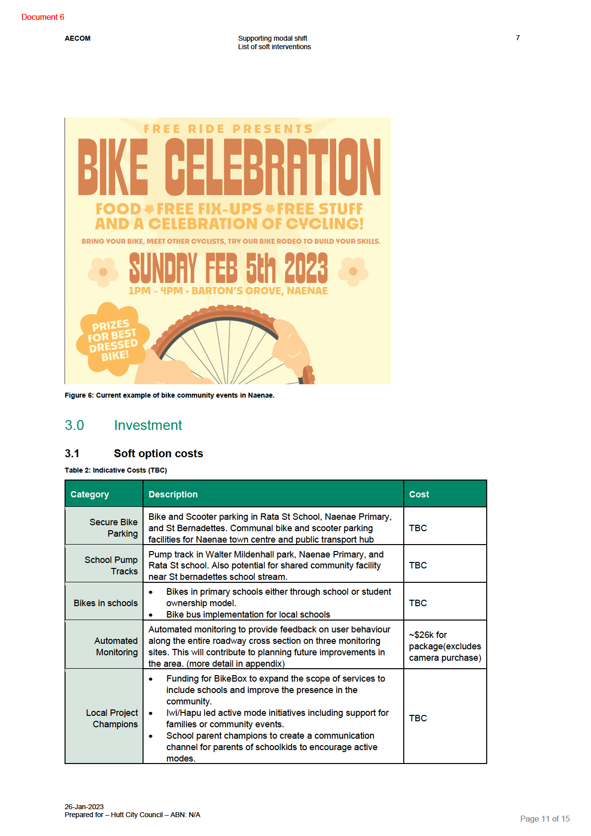 in the local Naenae area. Such events could be funded to align with completion of active mode infrastructure to