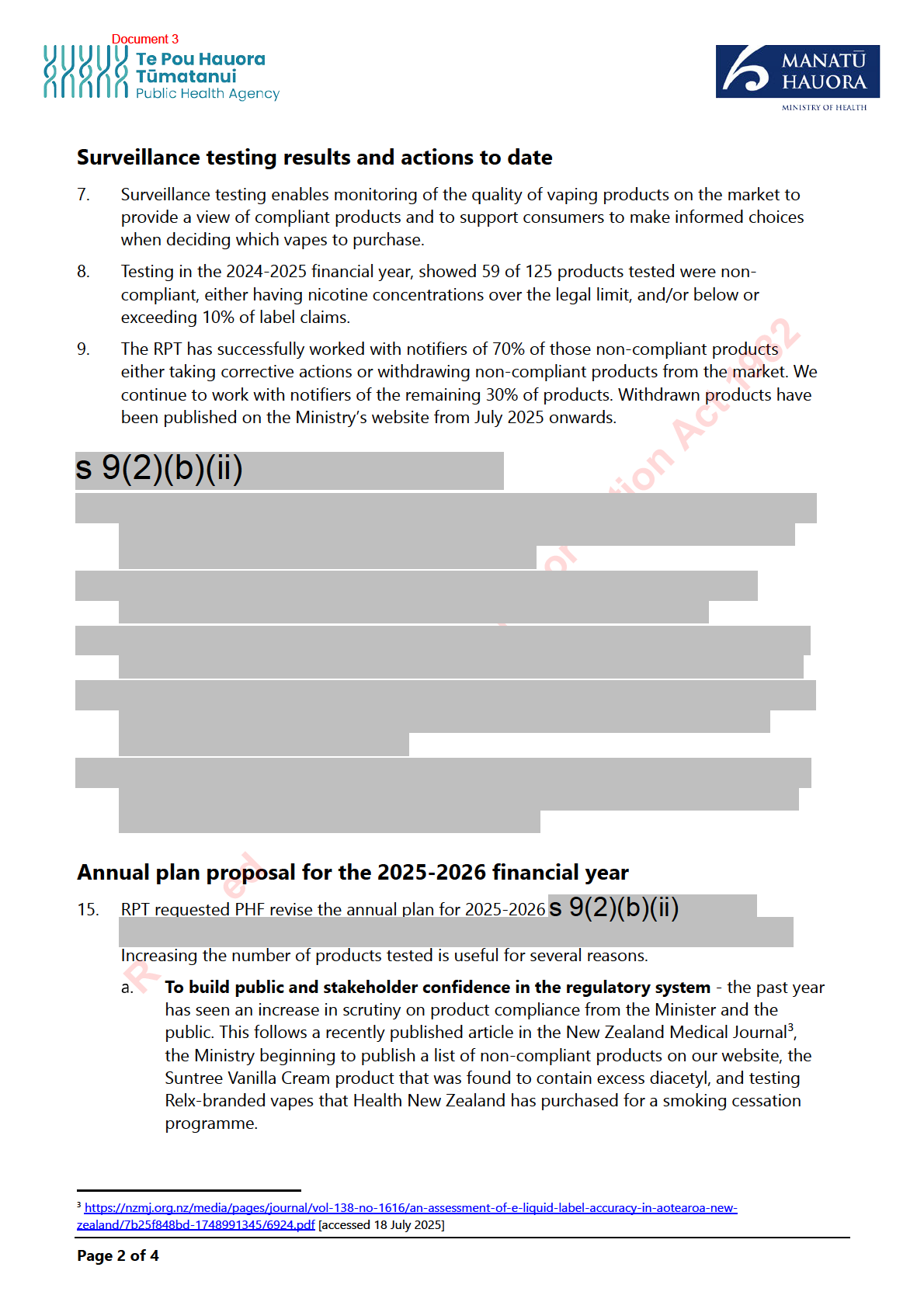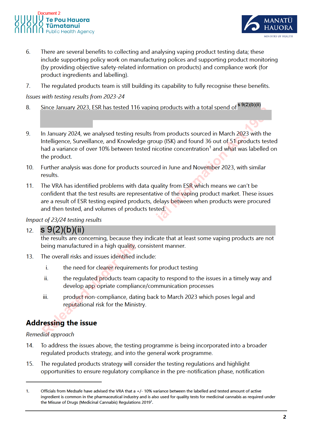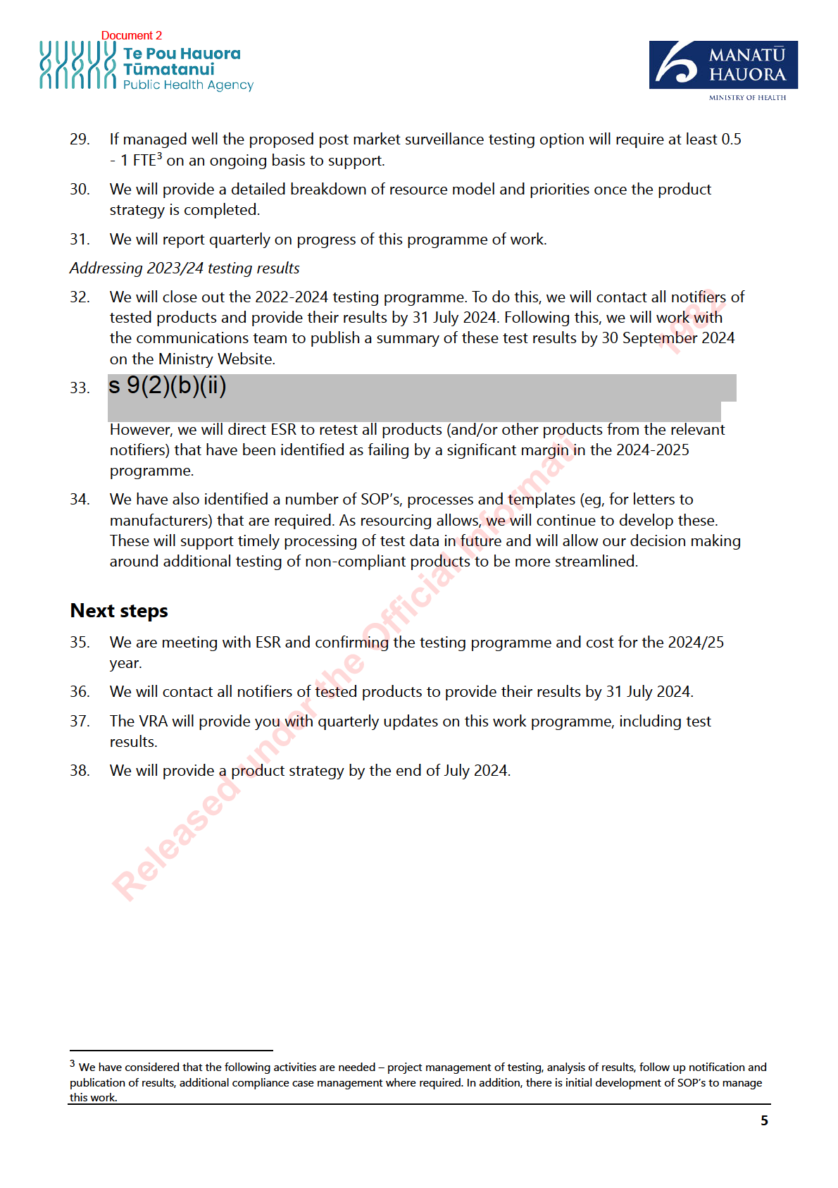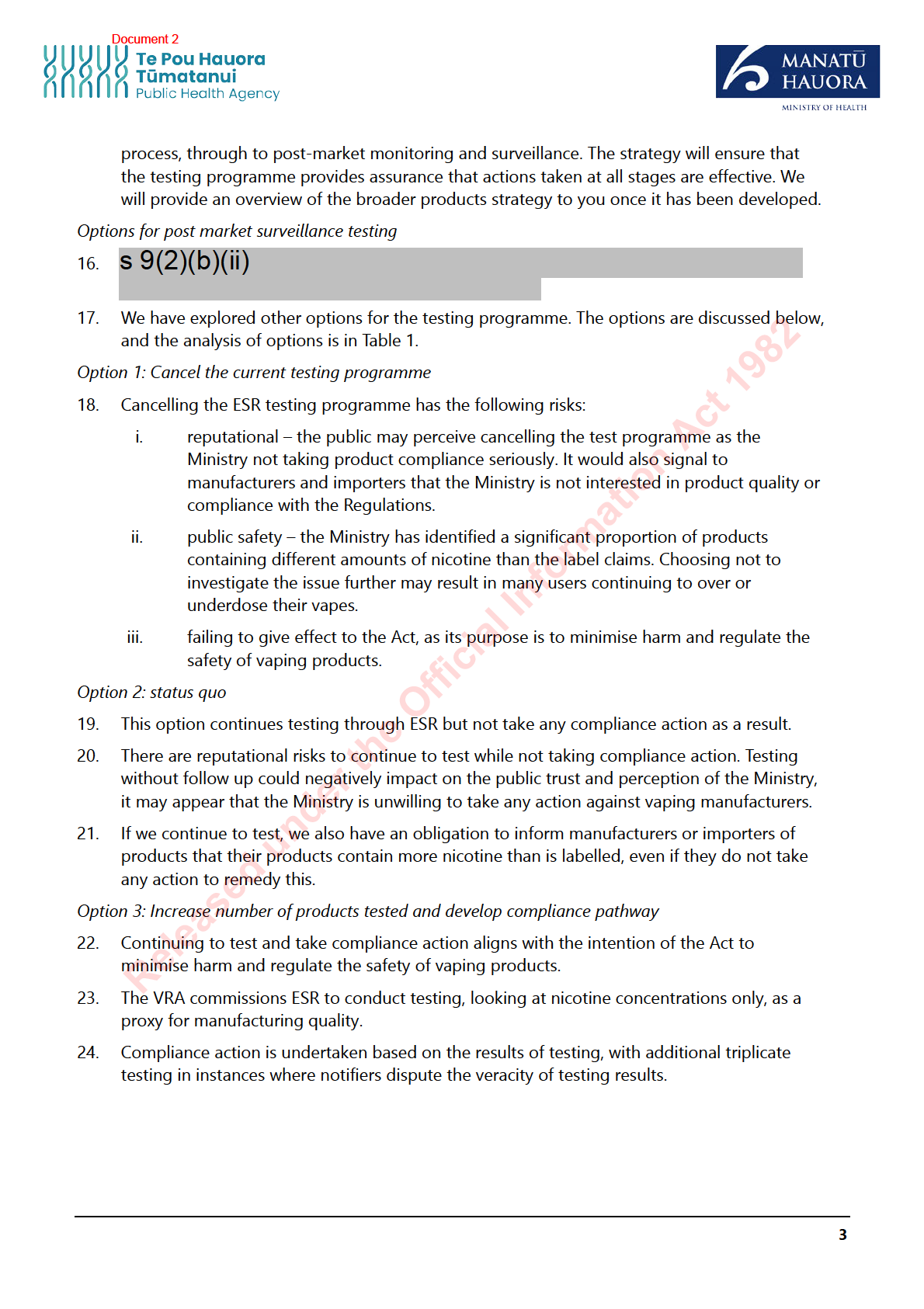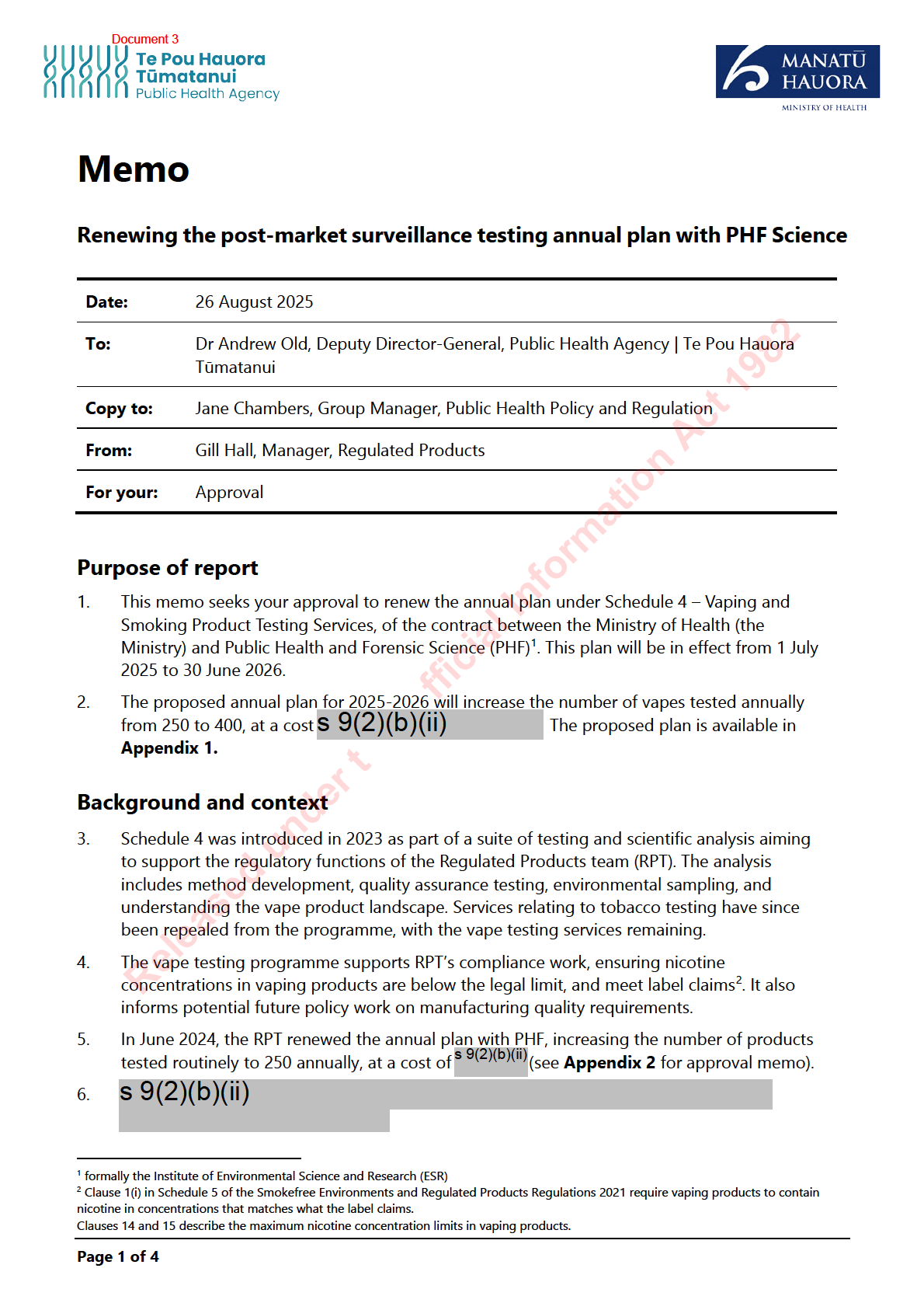 The Ministry of Health (the Ministry) contracted ESR in January 2023 to perform post-market