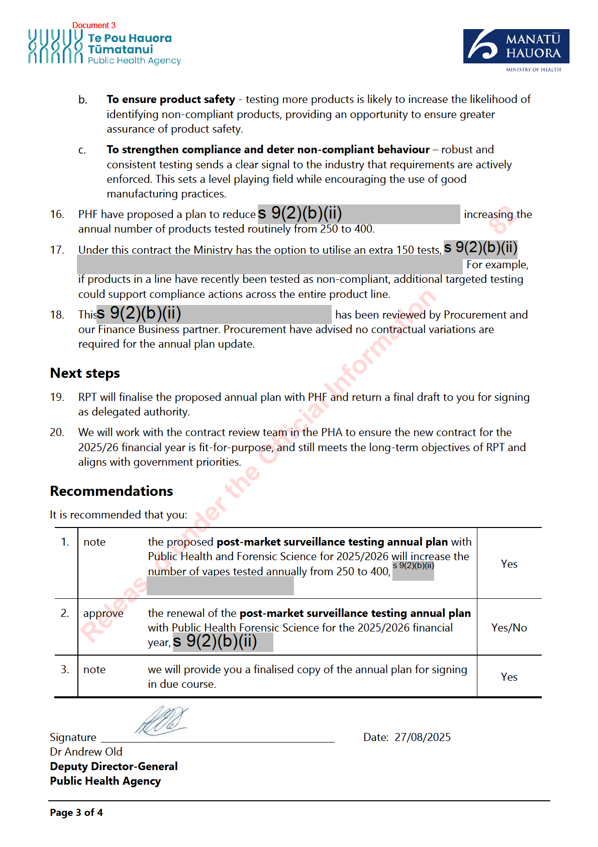 Director-General of Health (DG). Section 71 of the Act al ows the DG to request additional