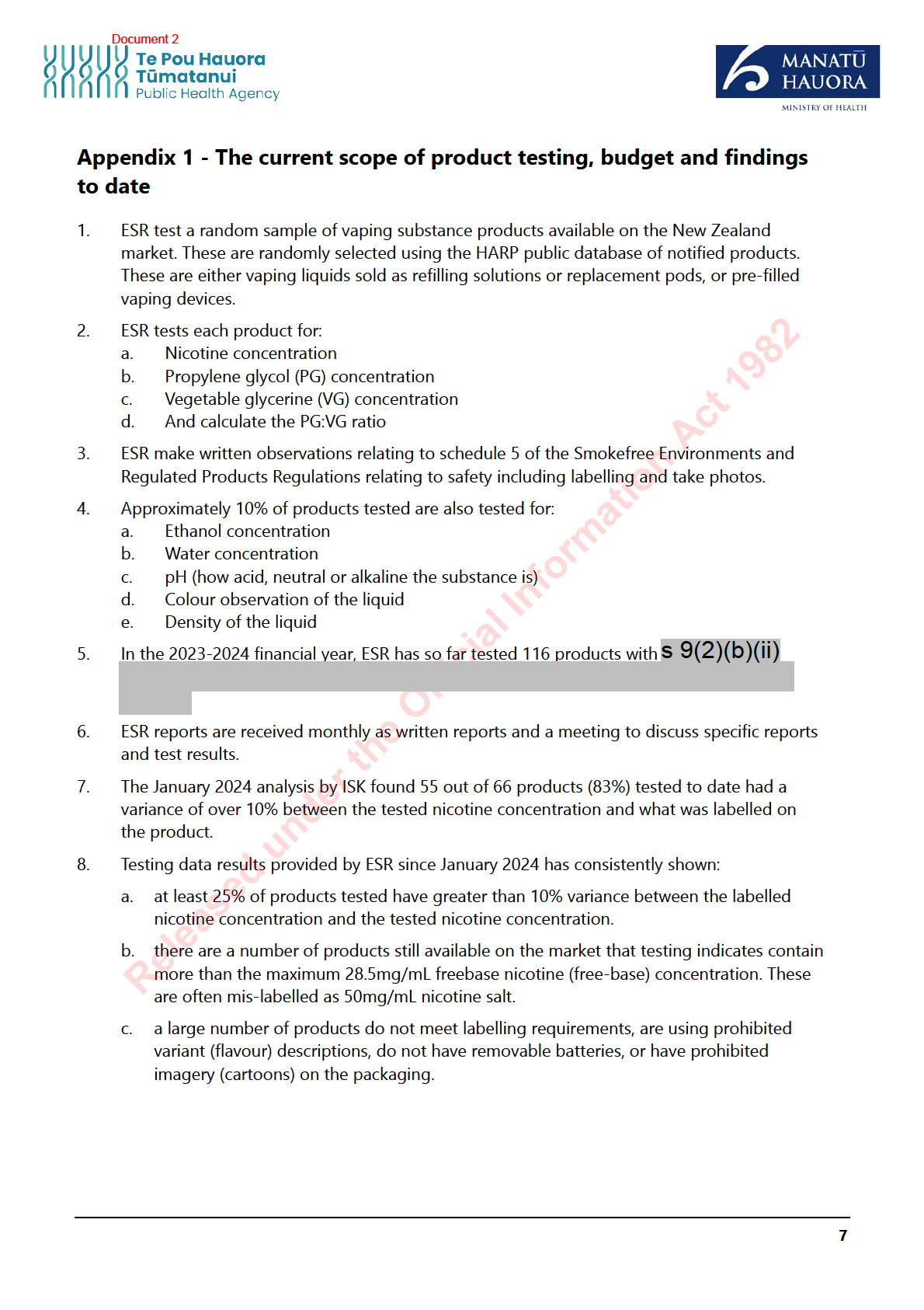Appendix 2 – testing for other substances.