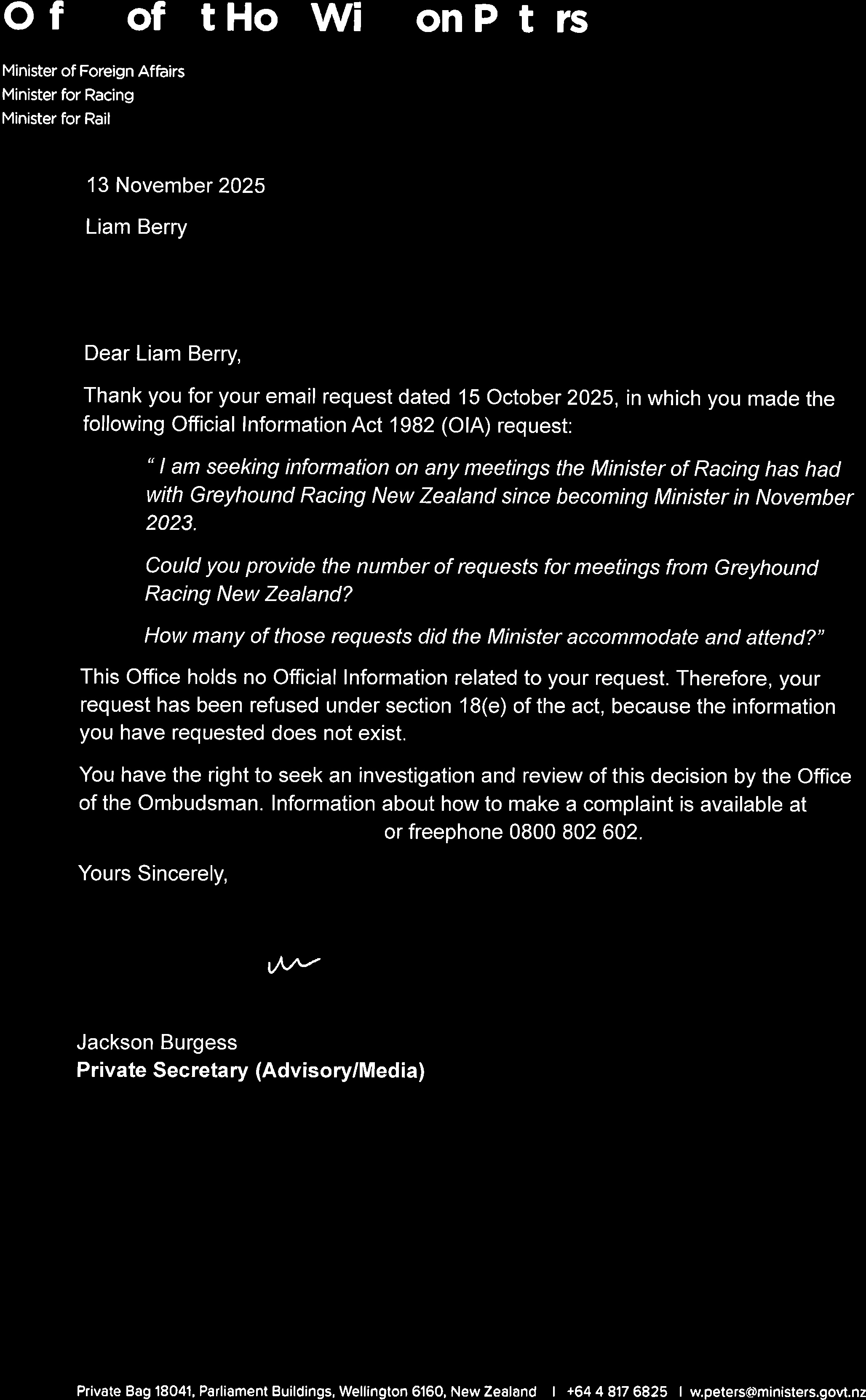 OIA Request on Meetings with Greyhound Racing New Zealand