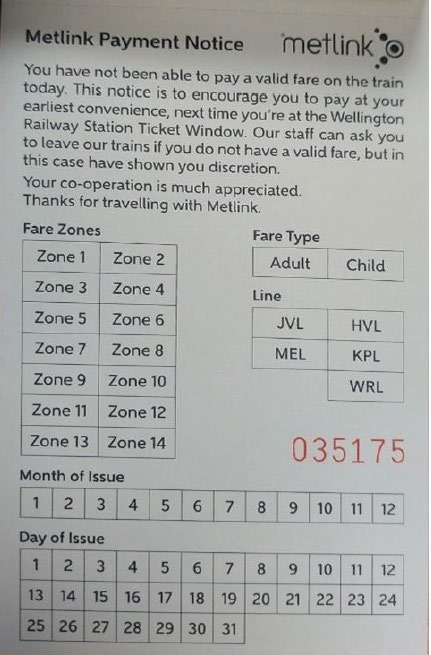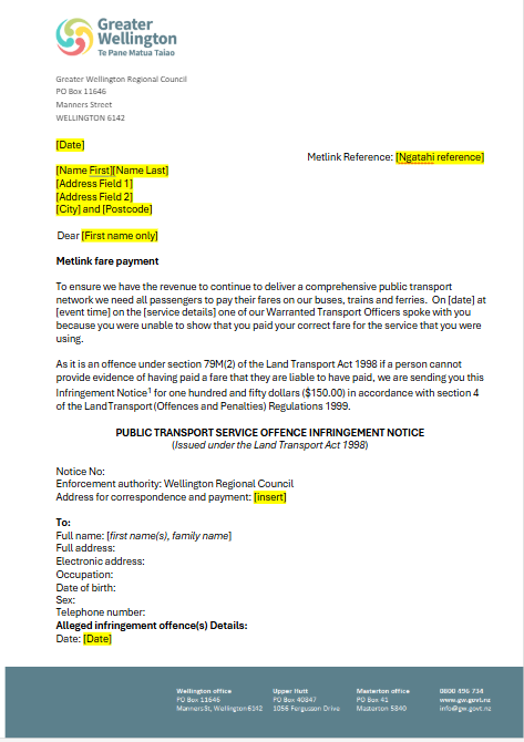 supporting information about issuing infringement notices on the Metlink