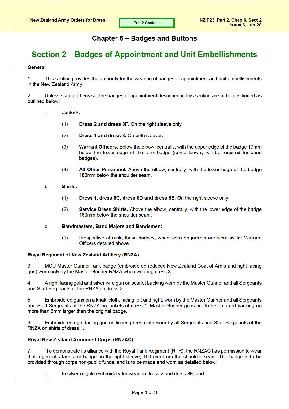 and Staff Sergeants of the RNZE on jackets of dress 1.