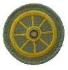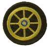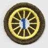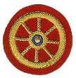 There are two types of badge, both comprising an embroidered wagon wheel with a numeral placed