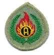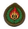 This badge consists of the letter ‘A’ in a circle from which symbolic flames emanate, and surrounded