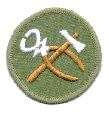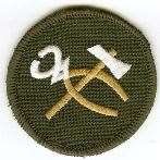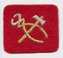This badge consists of a diagonally crossed hammer and pincers, worn with the handles facing down.