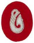 This badge is oval shaped, being 55 mm in height by 40 mm in width and consists of a Maori styled