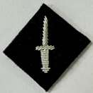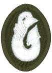 The badge consists of a silver ‘S’ above a pair of crossed rifles surrounded by crossed fern leaves.