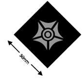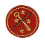 The badge consists of a pair of crossed flags against a maroon background and is worn as follows: