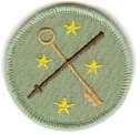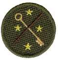 This badge consists of a taiaha and brass key diagonally crossed, with the four stars of the Southern