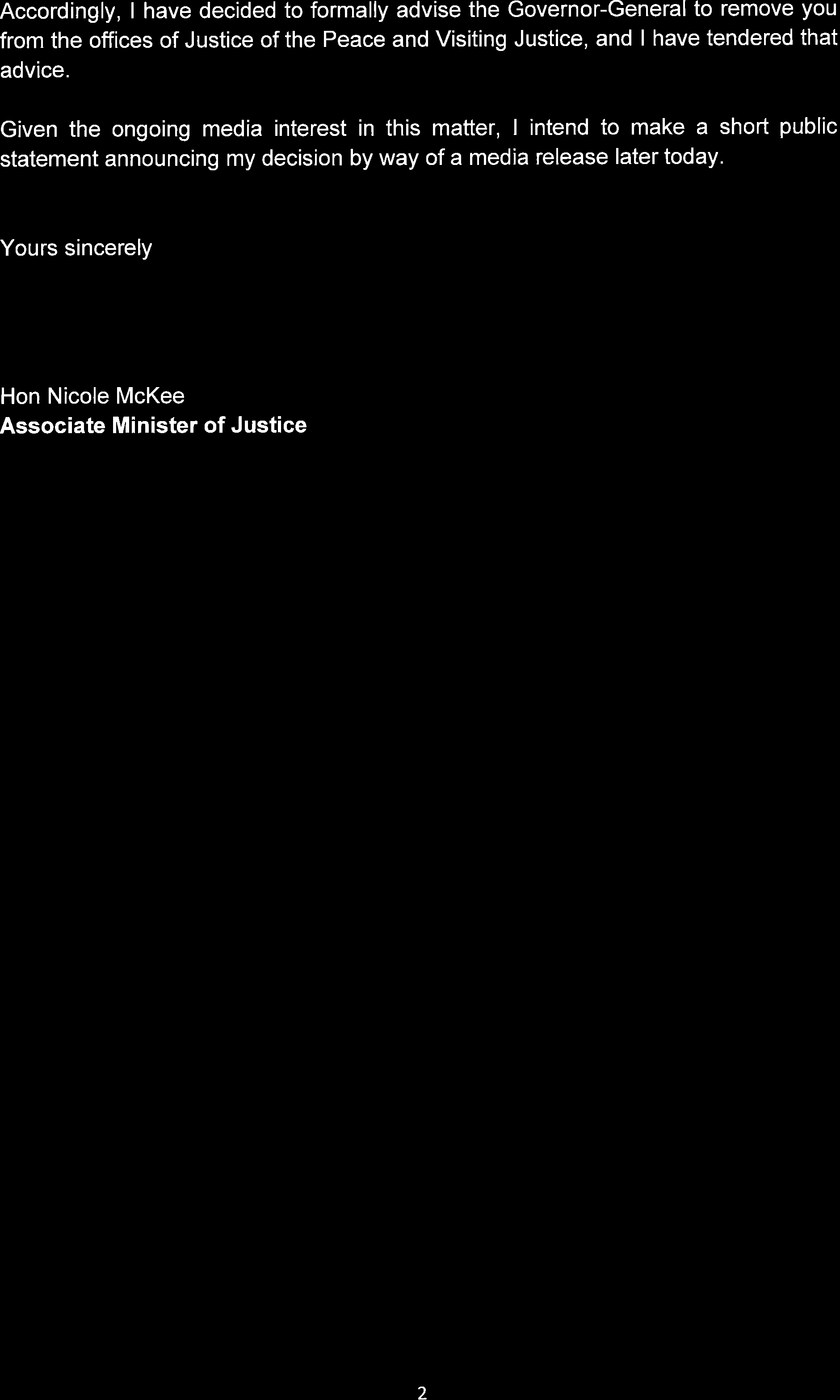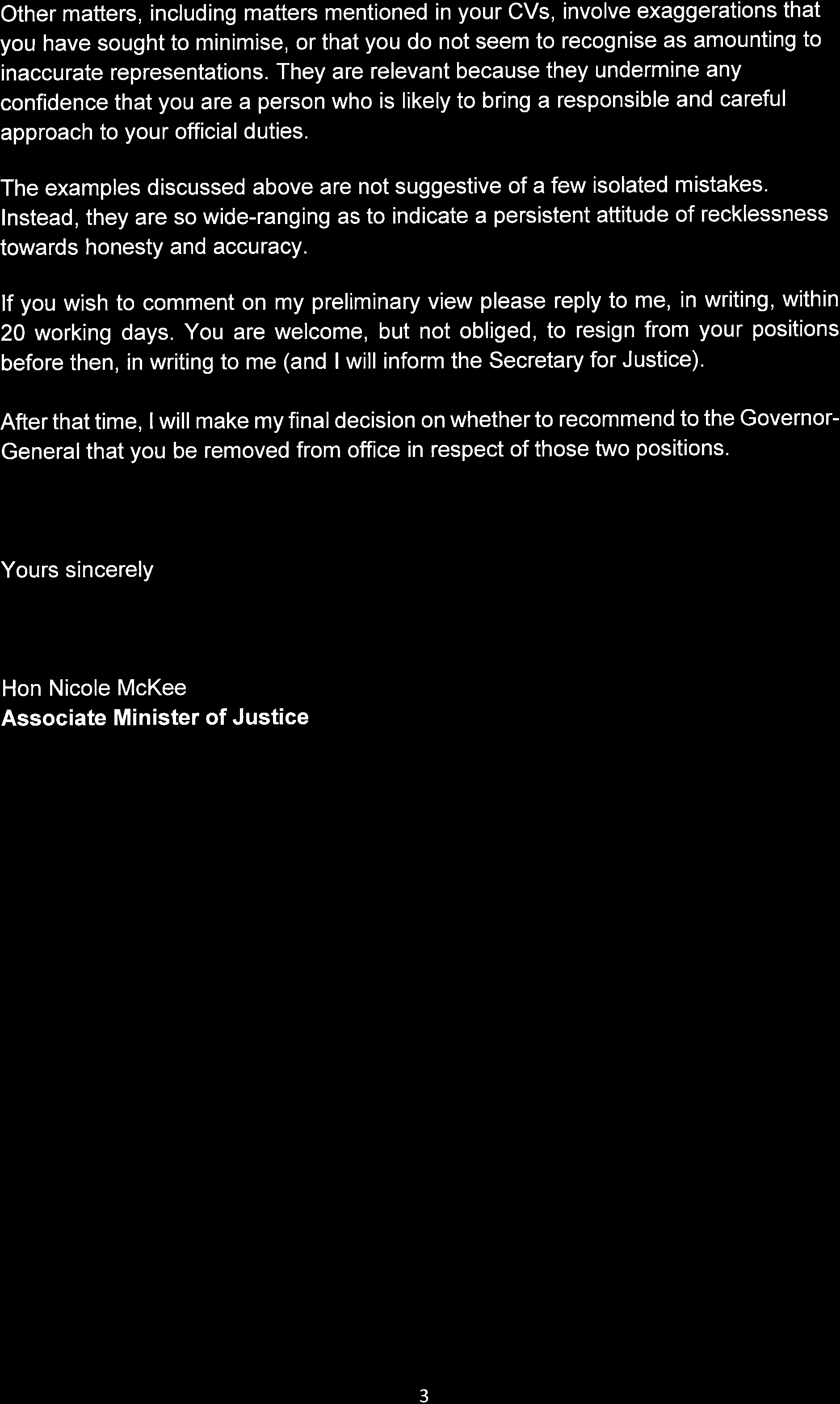 Letter from Hon Nicole McKee, Associate Minister of Justice