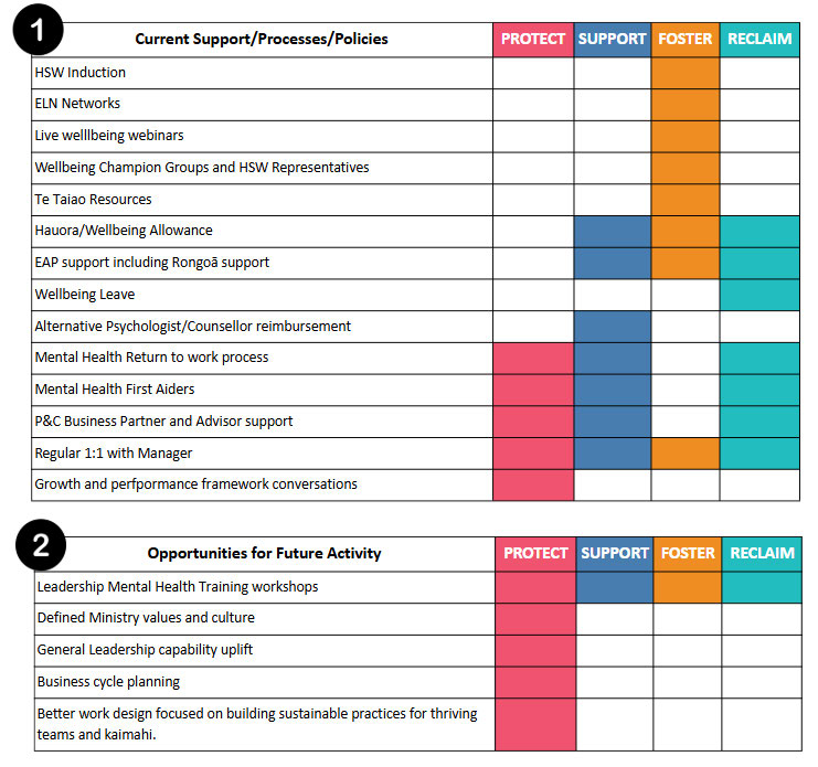 implemented. These included: the addition of lead indicators for kaimahi wellbeing