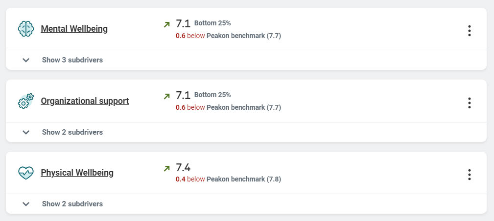 Our focus this quarter will be lifting three sub drivers from our Tō Reo results; Organisational support, Mental Wellbeing,